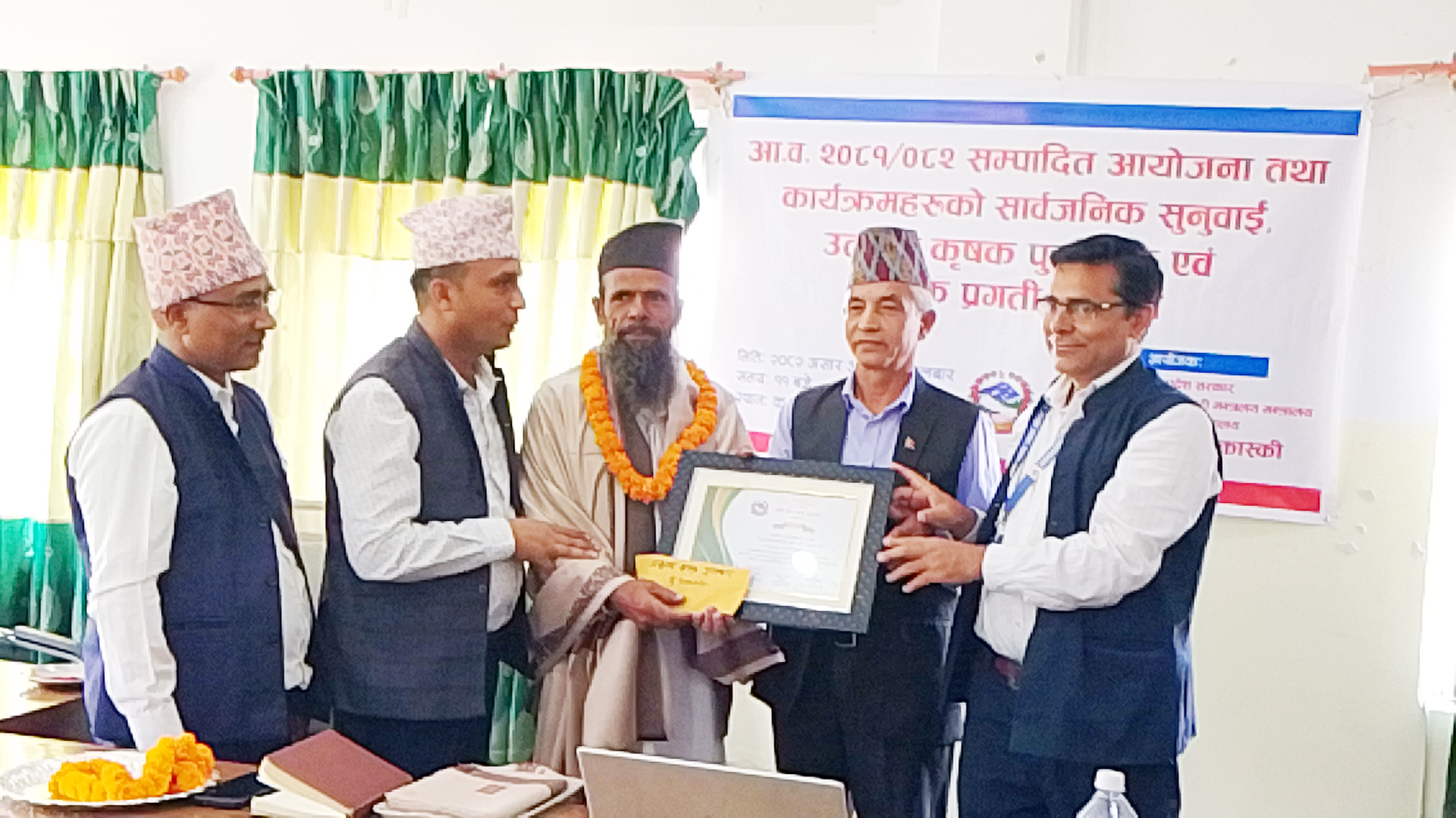 सो अवसरमा उत्कृष्ट कृषकहरूलाई सम्मान गरिएको थियो । सम्मानित कृषकहरूमा अन्नपूर्ण गाउँपालिकाका नरेन्द्रप्रसाद पौडेल, रूपा गाउँपालिकाका जोरेली मियाँ, माछापुच्छ्रे गाउँपालिकाका कृष्णप्रसाद दाहाल र पोखरा महानगरपालिकाकी पिन शोभा गुरुङ छन् । उनीहरूलाई जनही १० हजार, दोसल्ला र सम्मानपत्र प्रदान गरिएको छ ।