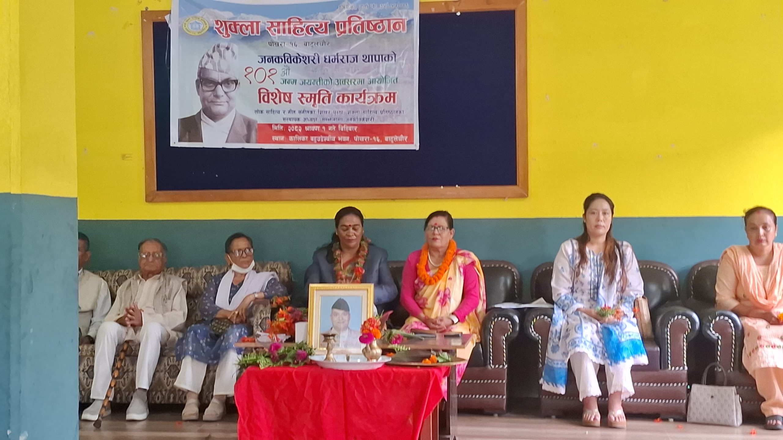जनकवि केशरी धर्मराज थापाको १०१औँ जन्मजयन्तीको अवसरमा पोखरामा एक विशेष कार्यक्रमका बिच स्मरण गरिएको छ । शुक्ला साहित्य प्रतिष्ठानले आयोजना गरेको कार्यक्रममा सहभागीहरूले राष्ट्रले चिनेको लोक सर्जकलाई आफ्नै क्षेत्रबाट उचित सम्मान हुन नसकेको भन्दै चिन्ता व्यक्त गरे ।