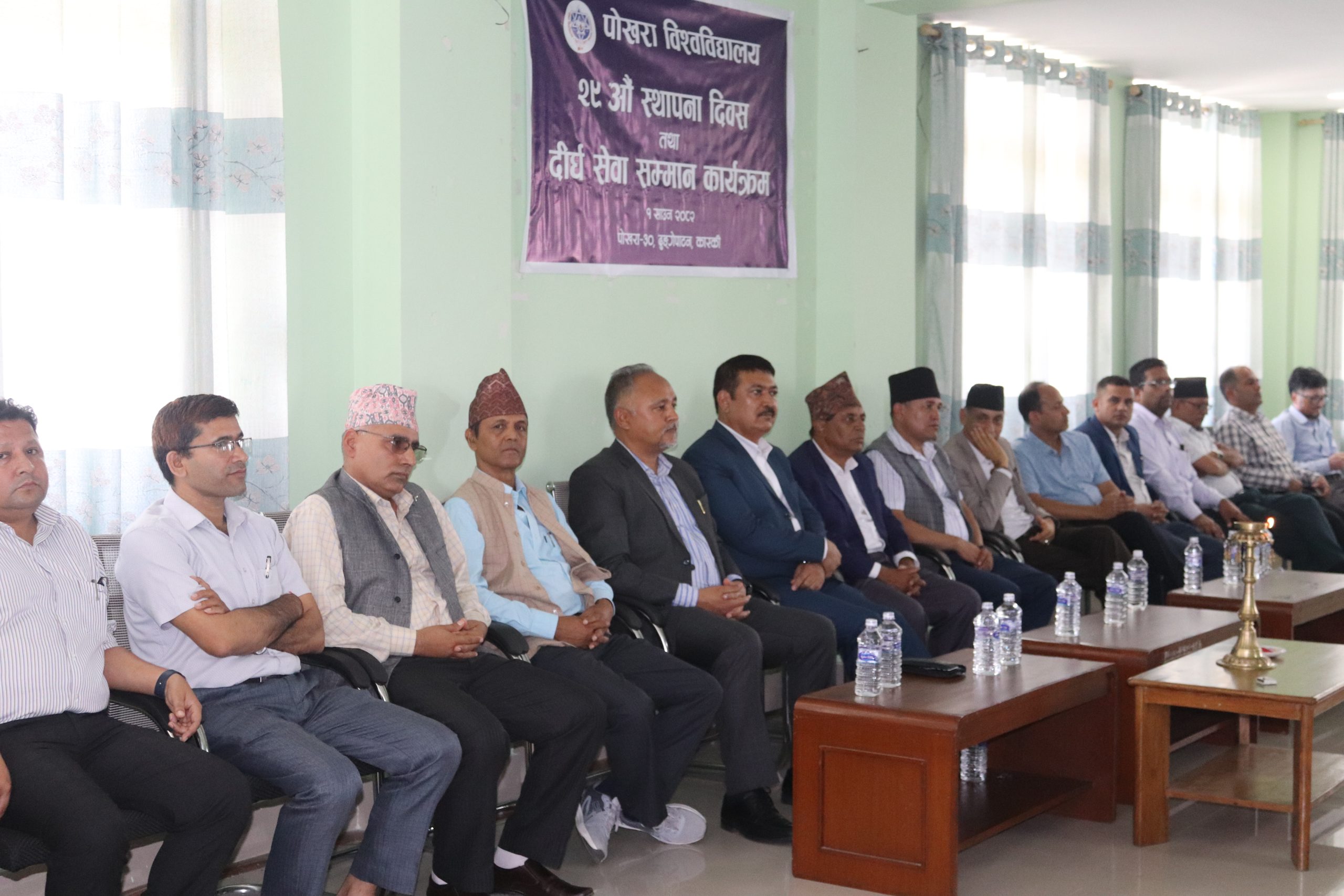 पोखरा विश्वविद्यालयले आफ्नो २९औँ स्थापना दिवस विभिन्न कार्यक्रमसहित मनाएको छ। वि.सं. २०५४ साउन १ गते ‘पोखरा विश्वविद्यालय ऐन, २०५३’ अनुसार स्थापना भएको विश्वविद्यालयले बिहीबार केन्द्रीय कार्यालय परिसर, पोखरा-३० मा वृक्षारोपण तथा दीर्घसेवा पदक वितरण कार्यक्रम आयोजना गरेको हो।