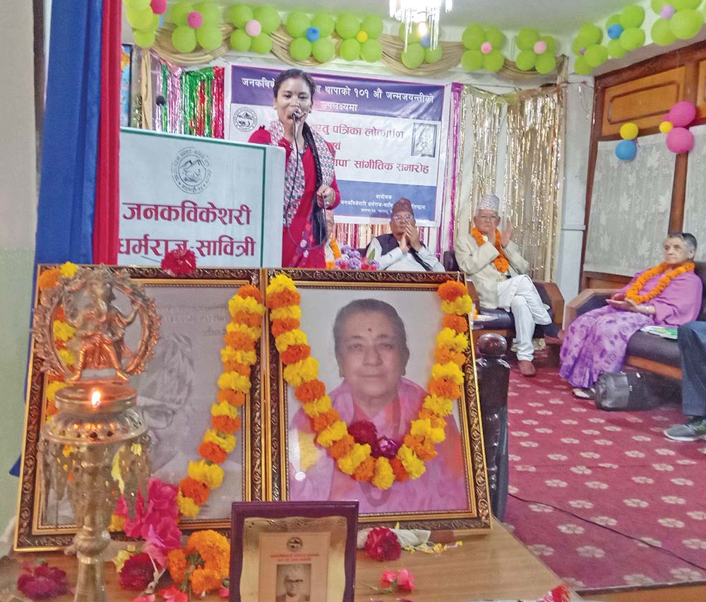 जनकविकेशरी धर्मराज थापालाई उनको १०१औँ जन्मजयन्तीको अवसरमा गीत-सङ्गीत र कृति लोकार्पणसहित सम्झना गरिएको छ। जनकविकेशरी धर्मराज–सावित्री थापा प्रतिष्ठानले बिहीबार काठमाडौँमा आयोजना गरेको कार्यक्रममा उनको योगदानको स्मरण गरियो।