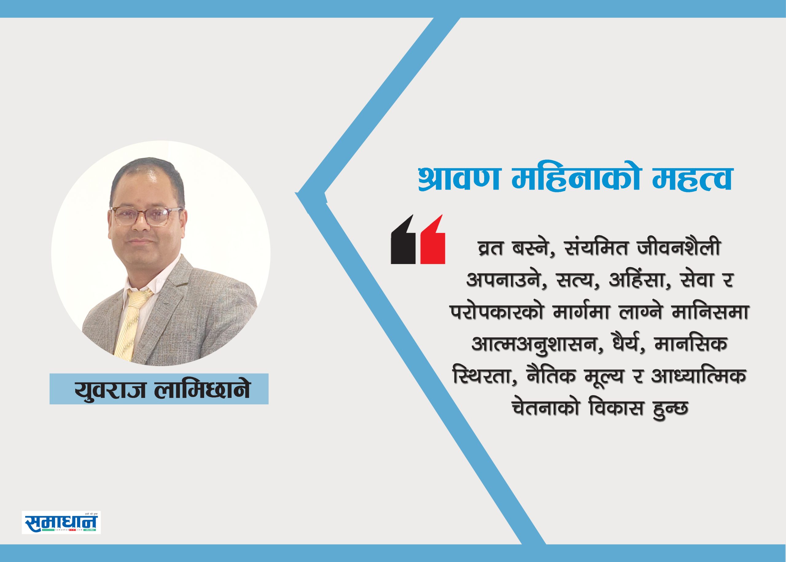 श्रावण महिना केवल बाह्य पूजा होइन, यो आत्मसमीक्षा, आत्मनियन्त्रण र आध्यात्मिक अनुशासनको पनि समय हो । यस महिनामा गरिने अभ्यासहरू, जस्तैः ब्रह्मचर्यको पालन, सात्त्विक भोजन, नियमित पूजा र जप, निन्दा, लोभ, काम, क्रोधजस्ता विकारहरूबाट टाढा रहने अभ्यास, दान, धर्म, सेवा र परोपकारमा सहभागिता आदिले मानिसको जीवनशैलीमा सकारात्मक परिवर्तन ल्याउँछ । व्यक्ति धर्म, ध्यान, संयम र सन्तुलनको मार्गमा अग्रसर हुन्छ ।