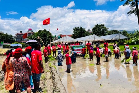 उनका अनुसार नेकपाले गत असार १० देखि यही साउन १० गतेसम्म अत्यावश्यकबाहेक पार्टीका अन्य कामलाई थाती राखी सबै तहका नेता तथा कार्यकर्ता उत्पादनमा जोडिने निर्णय गरेको थियो। पार्टीको सोही नीतिअनुसार महासचिव नेत्रविक्रम चन्द लगायत देशभरका नेताकार्यकर्ता अहिले रोपाइँमा व्यस्त रहेको प्रदेश इन्चार्ज भुजेलले बताइन्। उनका अनुसार कास्कीको पोखरा महानगरपालिका–१४ छिनेडाँडामा एक बिघा क्षेत्रफलमा रैथाने जेठोबुढो धान रोपिएको हो।