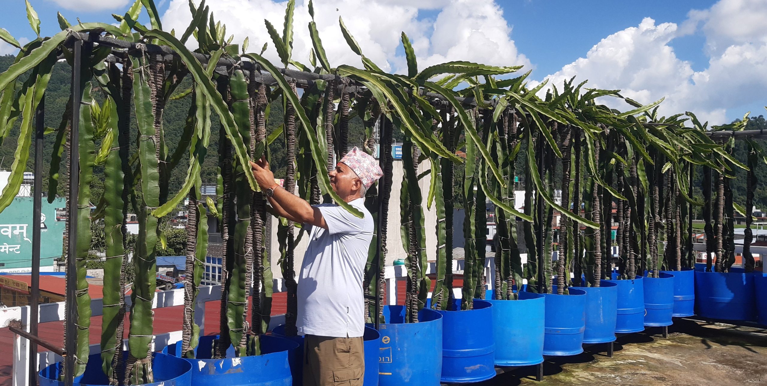 पोखरा महानगरपालिका-१३ पाटनबेँसीमा पत्रकार शिरोमणि बरालले घरको कौसीमा ड्रागन फलको खेती सुरु गरेको आठ महिना भयो । उनको कौसीमा लगाइएका ड्रागनका बोटहरूमा फल लाग्न थालिसकेका छन् ।