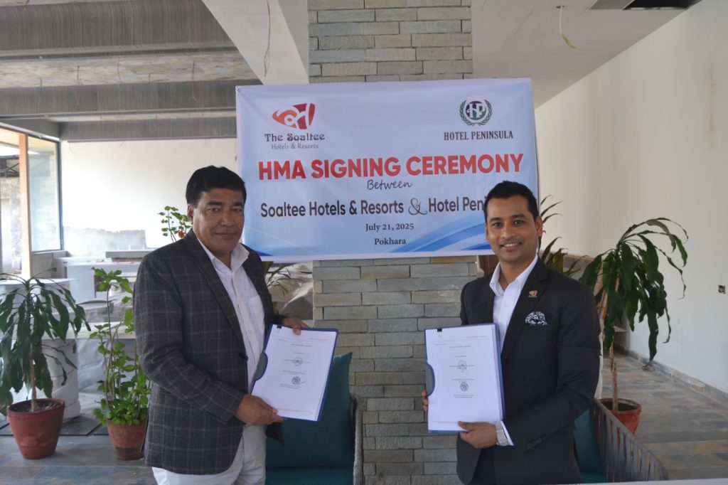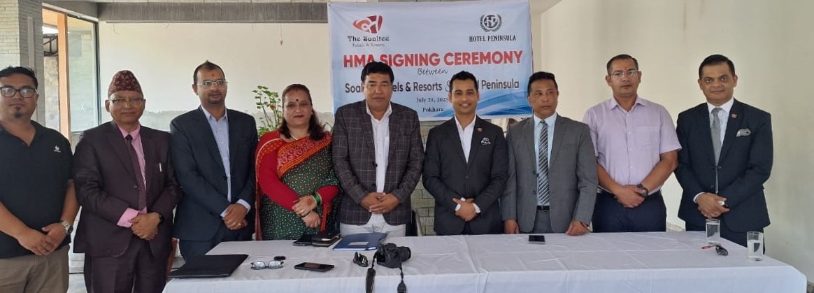 होटेल व्यवस्थापनसम्बन्धी सम्झौतामा सोल्टी होटेल लिमिटेडका तर्फबाट उपाध्यक्ष सुदर्शन चापागाईं र होटेल पेनिन्सुला प्रालिका संस्थापक तथा कार्यकारी अध्यक्ष खिमबहादुर ढकालले हस्ताक्षर गरेका हुन् ।