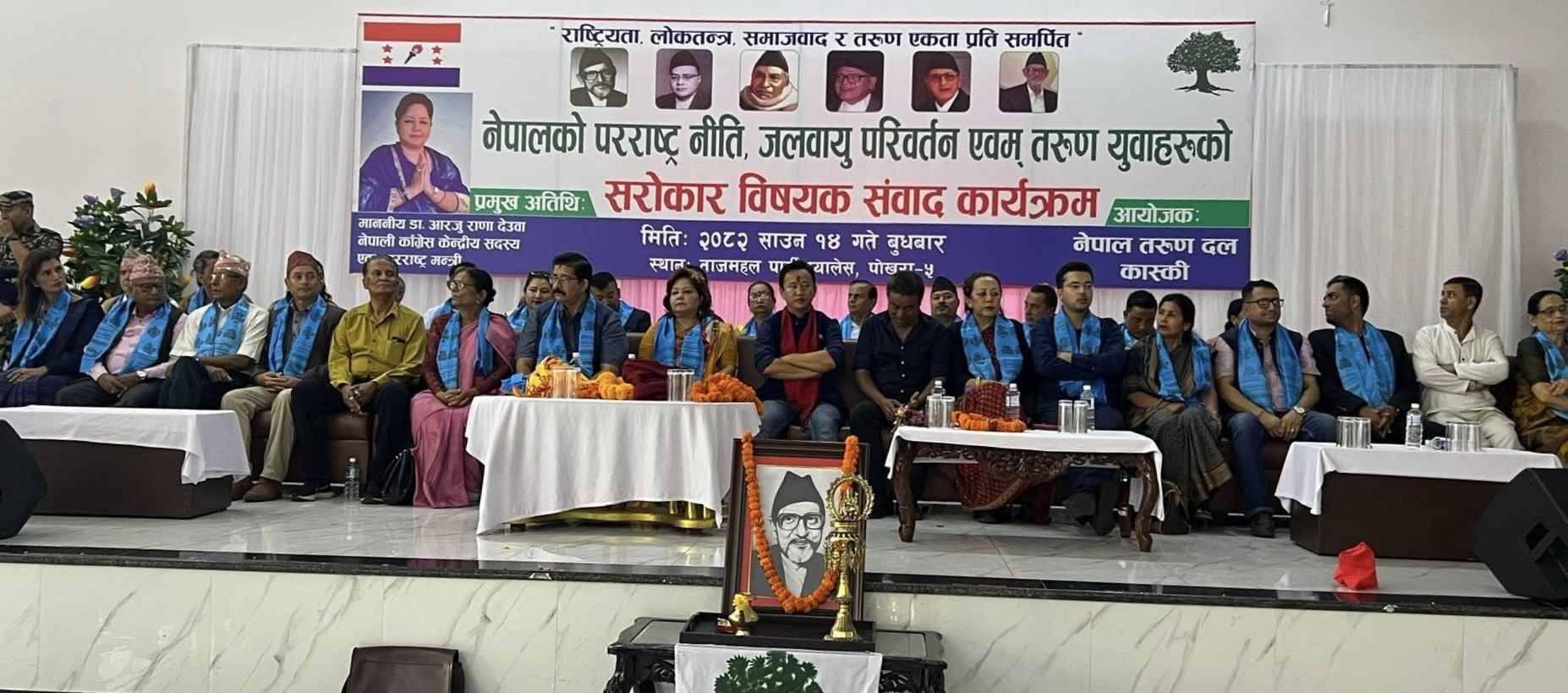 नेपाल तरुण दल कास्कीले बुधबार पोखरामा आयोजना गरेको ‘नेपालको परराष्ट्र नीति, जलवायु परिवर्तन तथा तरुणहरूको सरोकार’ विषयक अन्तरक्रिया कार्यक्रममा बोल्दै उनले यस्तो बताएकी हुन् ।