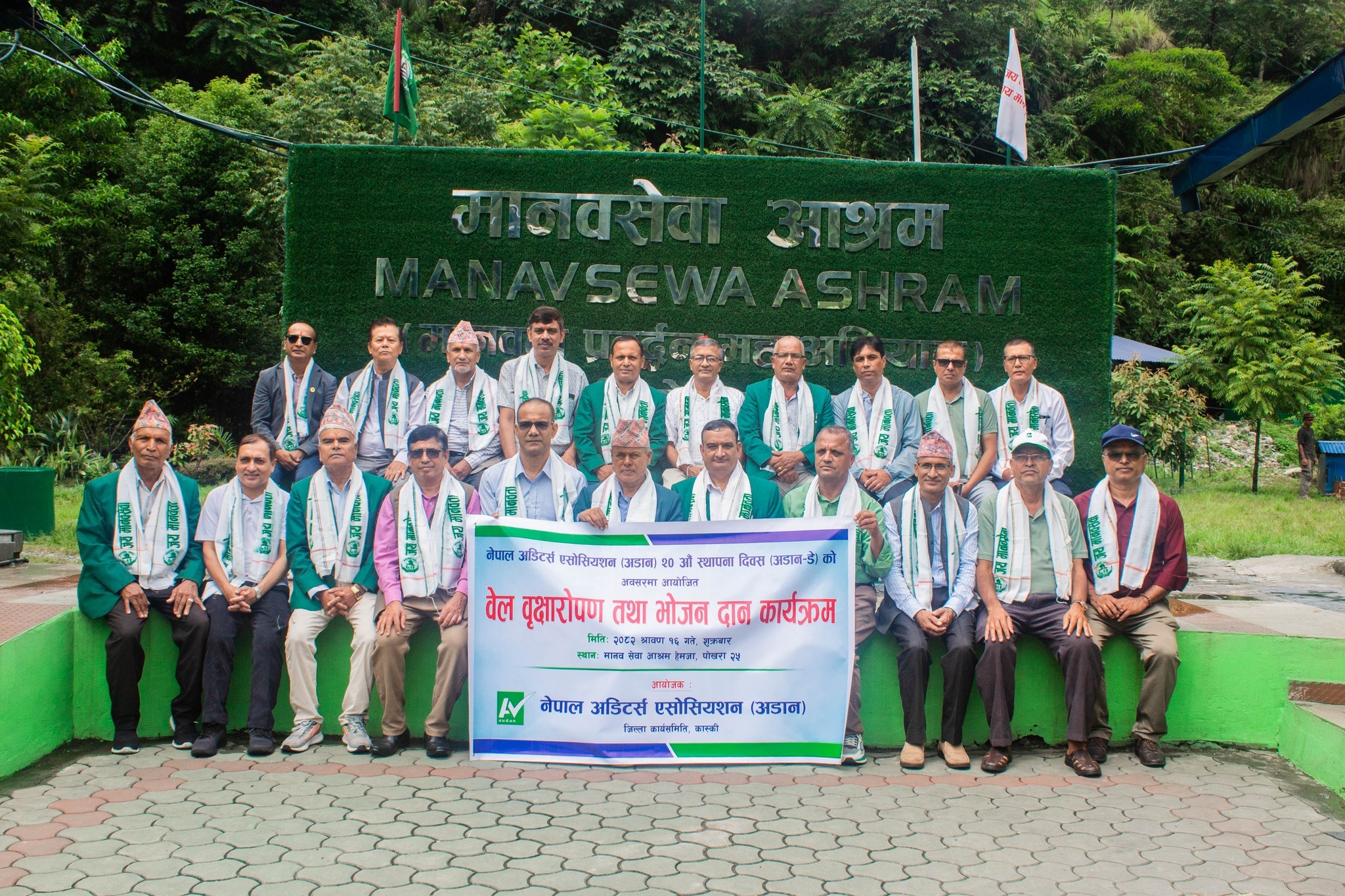 नेपाल अडिटेर्स एसोसियसन (अडान) जिल्ला कार्य समिति, कास्कीले आफ्नो २० औं स्थापना दिवस सामाजिक सेवाका काम गरेर मनाएको छ । स्थापना दिवसको अवसरमा समितिले पोखराको हेमजामा रहेको मानवसेवा आश्रममा आश्रितहरुका लागि भोजन सेवा प्रदान गर्नुका साथै आश्रम परिसरमा वृक्षारोपण गरेको छ ।