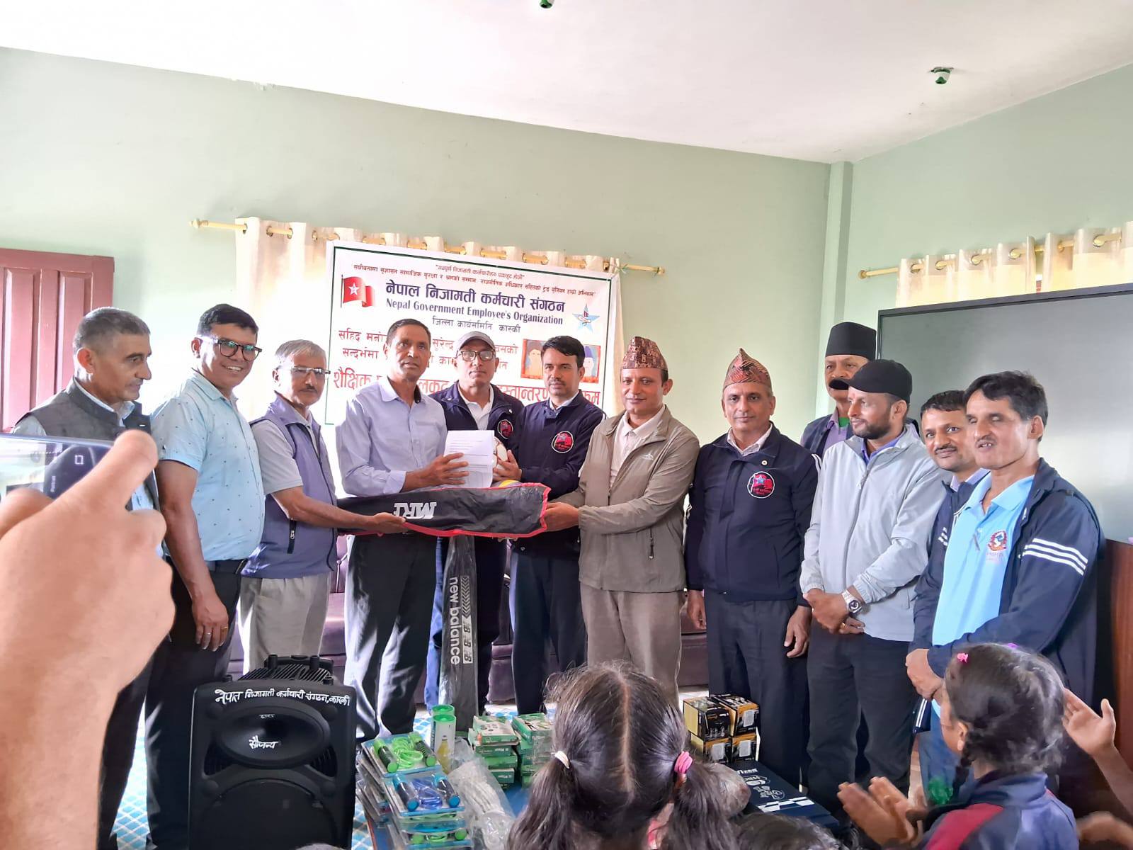 पेशागत आन्दोलनका सहिदहरु मनोज जोशी, झपेन्द्र कार्की र मनोज विक स्मृति दिवस २०८२ को सन्दर्भमा सप्ताहव्यापी कार्यक्रम अन्तर्गत विद्यालयलाई खेलकुद सामग्री हस्तान्तरण गरेको कर्मचारी संगठन कास्की अध्यक्ष रामचन्द्र पहारीले जानकारी दिए । कार्यसमितिका सदस्यको मासिक लेबीबाट संकलित रकमबाट ५० हजार बराबरको खेलकुद सामाग्री विद्यालयलाई प्रदान गरिएको हो ।