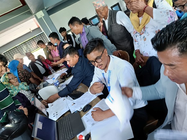 ‘हरेक वर्ष भत्ताका लागि ‘बायोमेट्रिक’ सहित लाभग्राही सूची नवीकरण गर्नुपर्ने बाध्यकारी व्यवस्था छ’, उनले भने, ‘गाउँपालिकामा नाम भए पनि बजारमा बसोबास गर्ने ज्येष्ठ नागरिक, अशक्त, बिरामी लाभग्राहीहरूलाई बर्खामा गाउँसम्म पुग्न कष्ट, झन्झट र दुःख हुने भएकाले जनप्रतिनिधि र कर्मचारी नै सहर झरेर नवीकरण गर्ने व्यवस्था मिलाएका हौँ।’