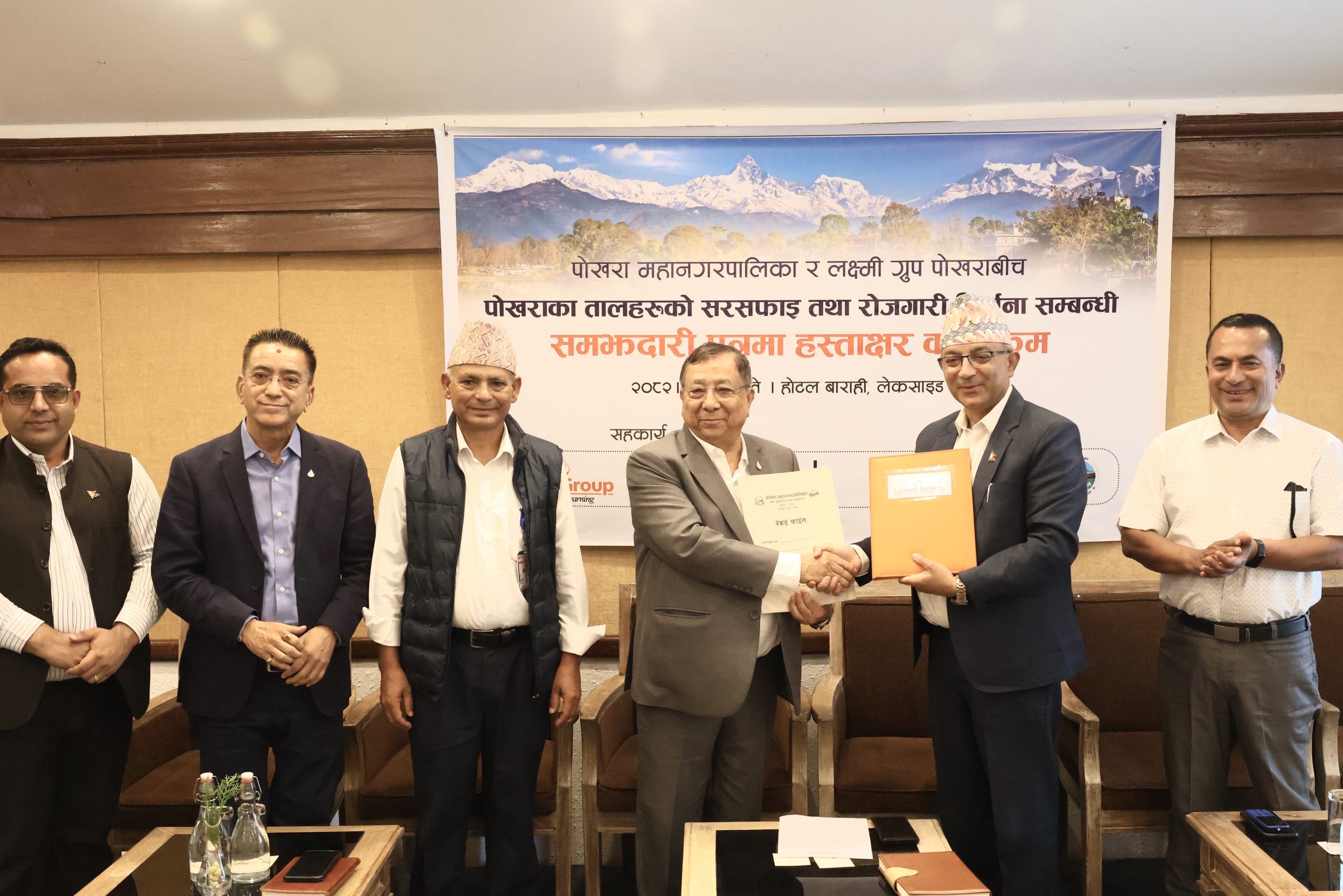 पोखराका ताल सफाइदेखि रोजगारी सिर्जनासम्म, महानगर र लक्ष्मी ग्रुपबीच पाँचवर्षे सम्झौता