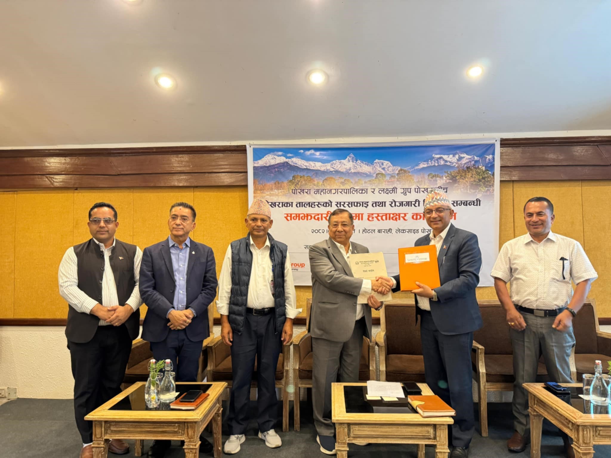 पोखराका ताल सरसफाइ गर्न लक्ष्मी ग्रुपसँग महानगरको एमओयू