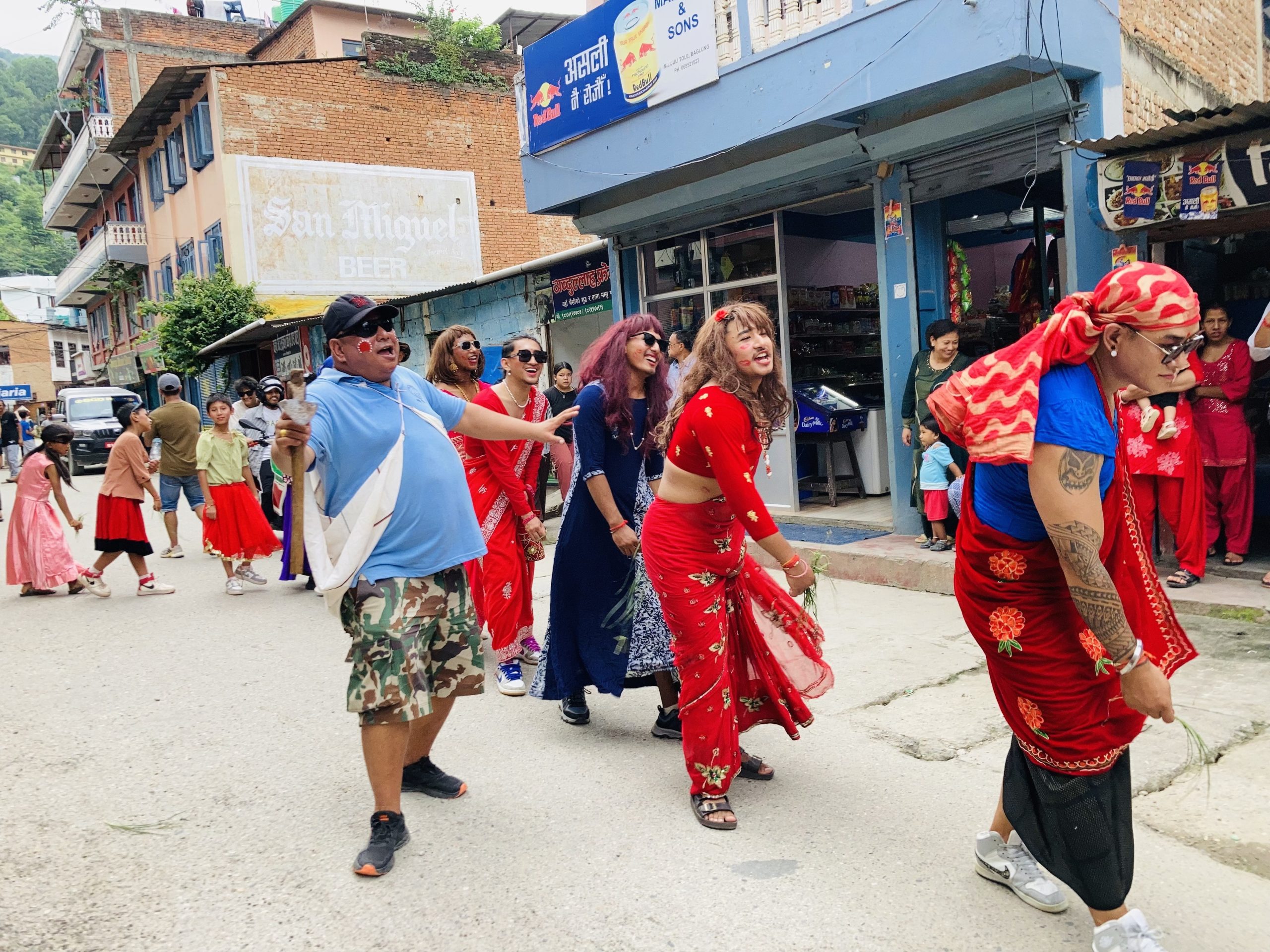मंगलबार बागलुङ बजारमा नेवारी समुदायले निकालेको रोपाइँजात्राका महिलाको भेषमा सजिएका पुरुषले गाएको गीतको अंश हो यो । उनीहरु मुखियाको खेत रोप्न आएका रोपारहरू अवस्थामा सजिएका छन् । केही पुरुषहरु भने बाउँसेको भूमिकामा छन् ।
