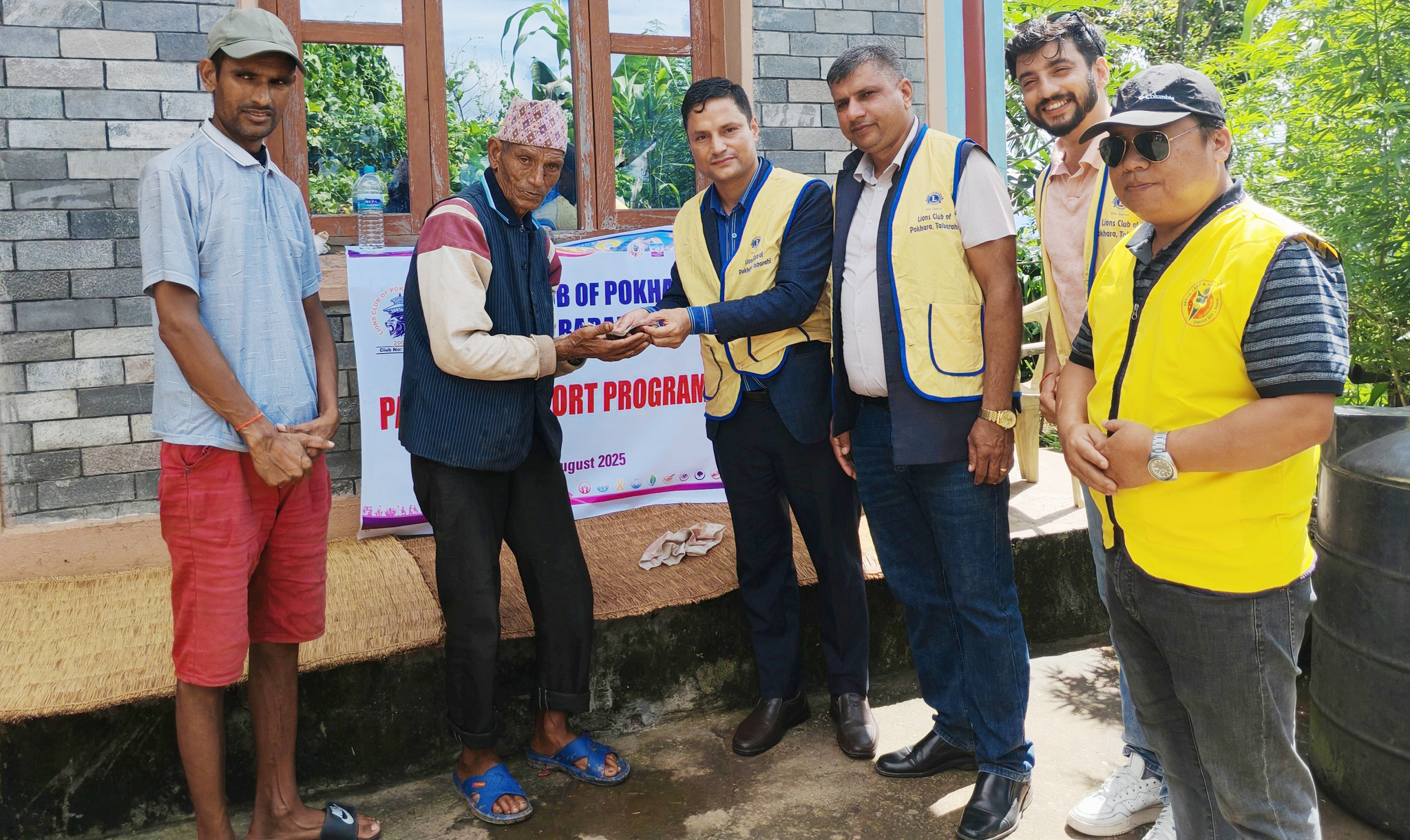 ६ वर्षदेखि उपचाररत उनलाई क्लवका पदाधिकारीले निवासमा पुगेर ३१ हजार ५ सय रुपैयाँ सहयोग प्रदान गरे । पोखरा महानगरपालिका वडा नम्बर २१ का वडाध्यक्ष दीपकप्रसाद सुवेदीको रोहबरमा सहयोग हस्तान्तरण गरिएको हो । वडाध्यक्ष सुवेदीले लायन्सको सहयोगप्रति कृतज्ञता जाहेर गरे ।