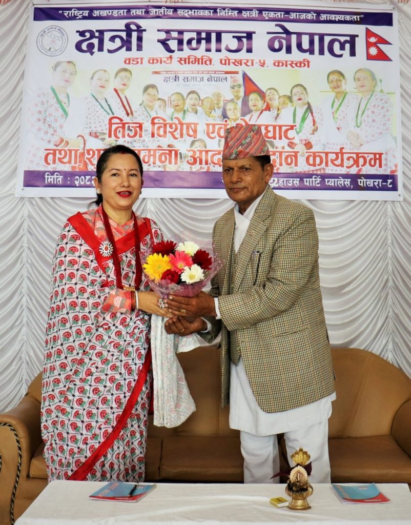 समाजका अध्यक्ष प्रेमबहादुर खत्रीको अध्यक्षतामा कार्यक्रममा वडा नम्बर ५ का निवर्तमान अध्यक्ष केशवबहादुर बराल, पोखरा वल्र्ड स्कुलका प्रधानाध्यापक मिलक केसी, कालिका थापा लगायले बोलेका थिए । कार्यक्रम सञ्चालन लोककुमारी क्षेत्रीले गरेकी थिइन् ।