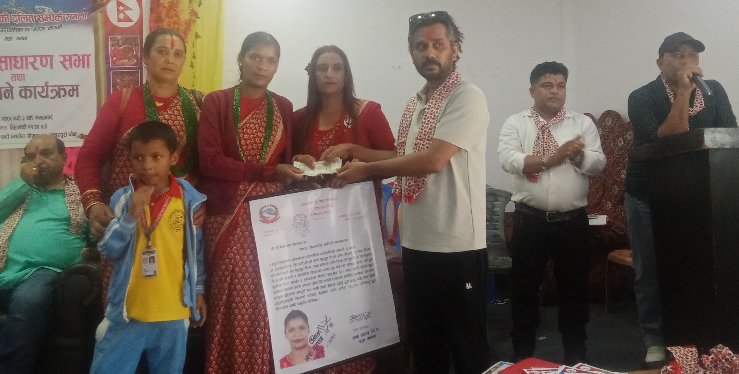 धौलागिरी कास्की दलित सम्पर्क समाजले गरेको वार्षिक साधारण सभामा वडा कमिटी अध्यक्ष महादेव अधिकारीले नगद ६ हजार विकलाई हस्तान्तरण गरे । विगत २ महिनादेखि दुवै मृगौलामा समस्या देखिएपछि विकले सहयोगको याचना गरेकी छन् ।