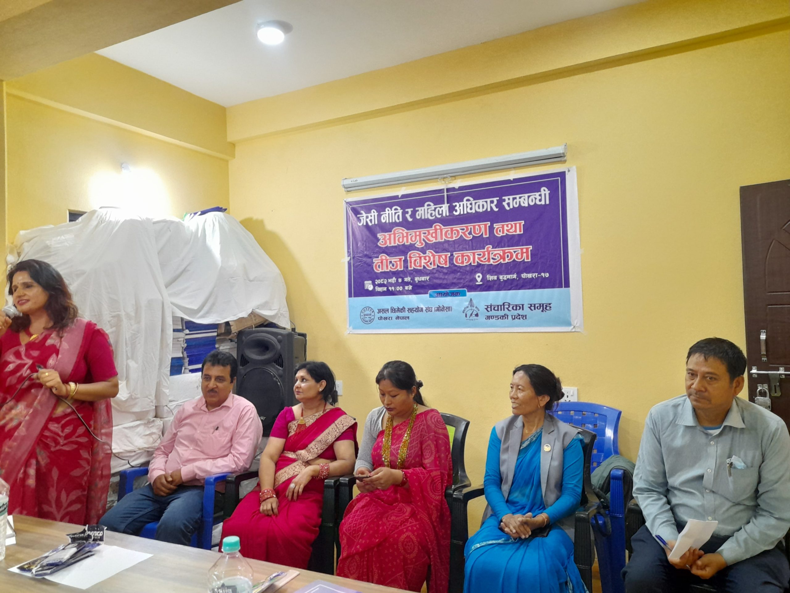 पोखरामा जेसी नीति र महिला अधिकार सम्बन्धी अभिमुखीकरण तथा तीज विशेष कार्यक्रम भएको छ।सञ्चारिका समूह गण्डकीको आयोजनामा र असल छिमेकी सहयोग सङ्घ गोनेसाको सहयोगमा बुधबार कार्यक्रम भएको हो।