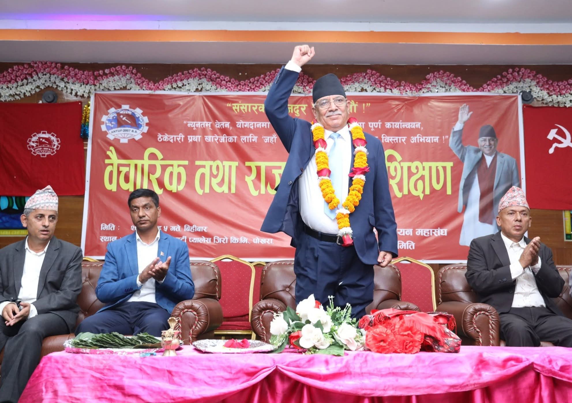 पोखरा । नेकपा (माओवादी केन्द्र)का अध्यक्ष पुष्पकमल दाहाल ‘प्रचण्ड’ले पार्टीभित्र अनुशासनहीनता र गुटगत प्रवृत्तिलाई अब कुनै हालतमा सहन नगर्ने बताएका छन् । अखिल नेपाल ट्रेड युनियन महासंघ गण्डकी प्रदेश समितिले बिहीबार पोखरामा आयोजना गरेको वैचारिक तथा राजनीतिक प्रशिक्षण कार्यक्रममा बोल्दै उनले माओवादी केन्द्रलाई सबल बनाउन दृढता, एकता र संगठनात्मक विस्तार अपरिहार्य रहेको स्पष्ट पारे ।