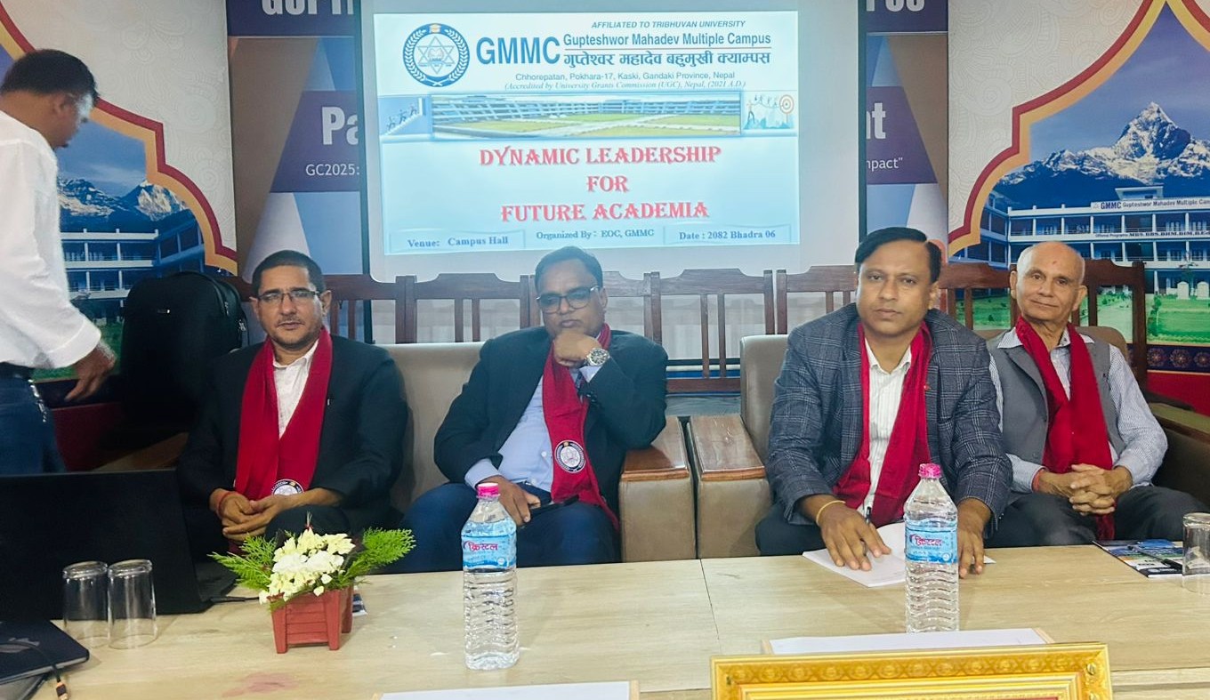 शैक्षिक नेतृत्व विकास गर्ने र विद्यालयसँगको सहकार्यलाई मजबुत बनाउने उद्देश्यले पोखरास्थित गुप्तेश्वर महादेव बहुमुखी क्याम्पसले ‘शिक्षा क्षेत्रको भविष्यको लागि गतिशील नेतृत्व’ शीर्षकमा कार्यशाला गोष्ठी आयोजना गरेको छ । कास्की र स्याङ्जाका २५ निजी तथा सरकारी विद्यालयका प्रधानाध्यापकसहित ५३ जना शिक्षकको गोष्ठीमा सहभागिता थियो ।