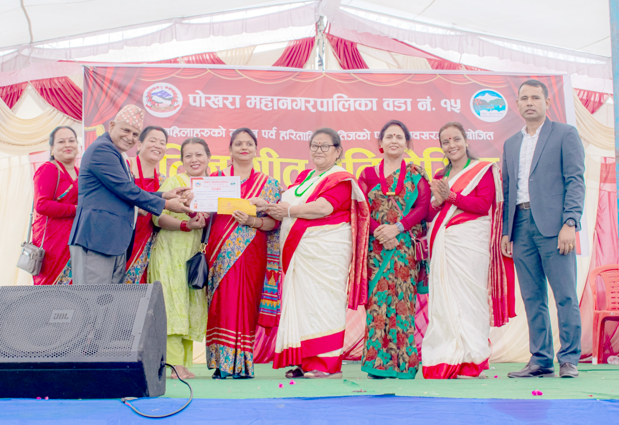 पोखरा । पोखरा महानगरपालिका वडा नम्बर १५ को आयोजनामा वडास्तरीय ‘तीज गीत प्रतियोगिता तथा तीज विशेष कार्यक्रम’ भएको छ । सिद्ध माध्यमिक विद्यालयको प्रांगणमा शुक्रबार आयोजित प्रतियोगिता भएको हो ।