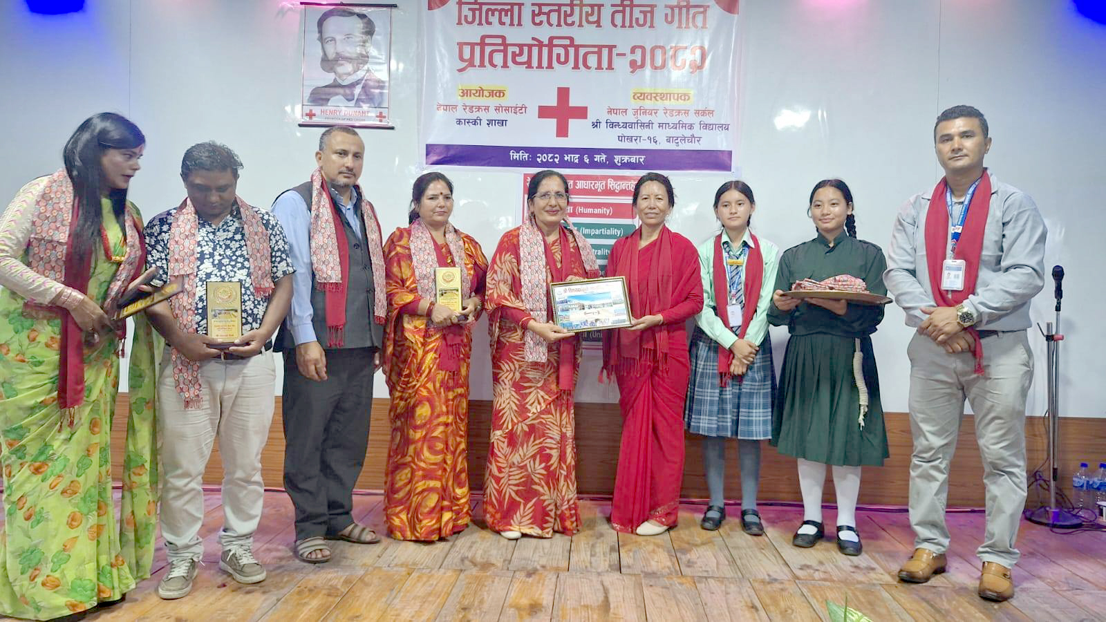 पोखरा । नेपाल रेडक्रस सोसाइटी कास्की अन्तर्गतको जुनियर युवा समितिले जिल्ला स्तरीय अन्तरविद्यालय तीज गीत प्रतियोगिता २०८८२ को आयोजना गरेको छ । प्रतियोगितामा पोखरा १६ बाटुलेचौरको विन्ध्यवासिनी मावि प्रथम भएको छ ।