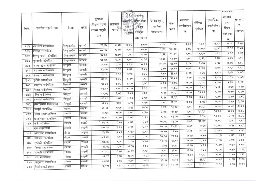 | स्थानीय तहको नाम | गुणस्तर परीक्षण अंक |