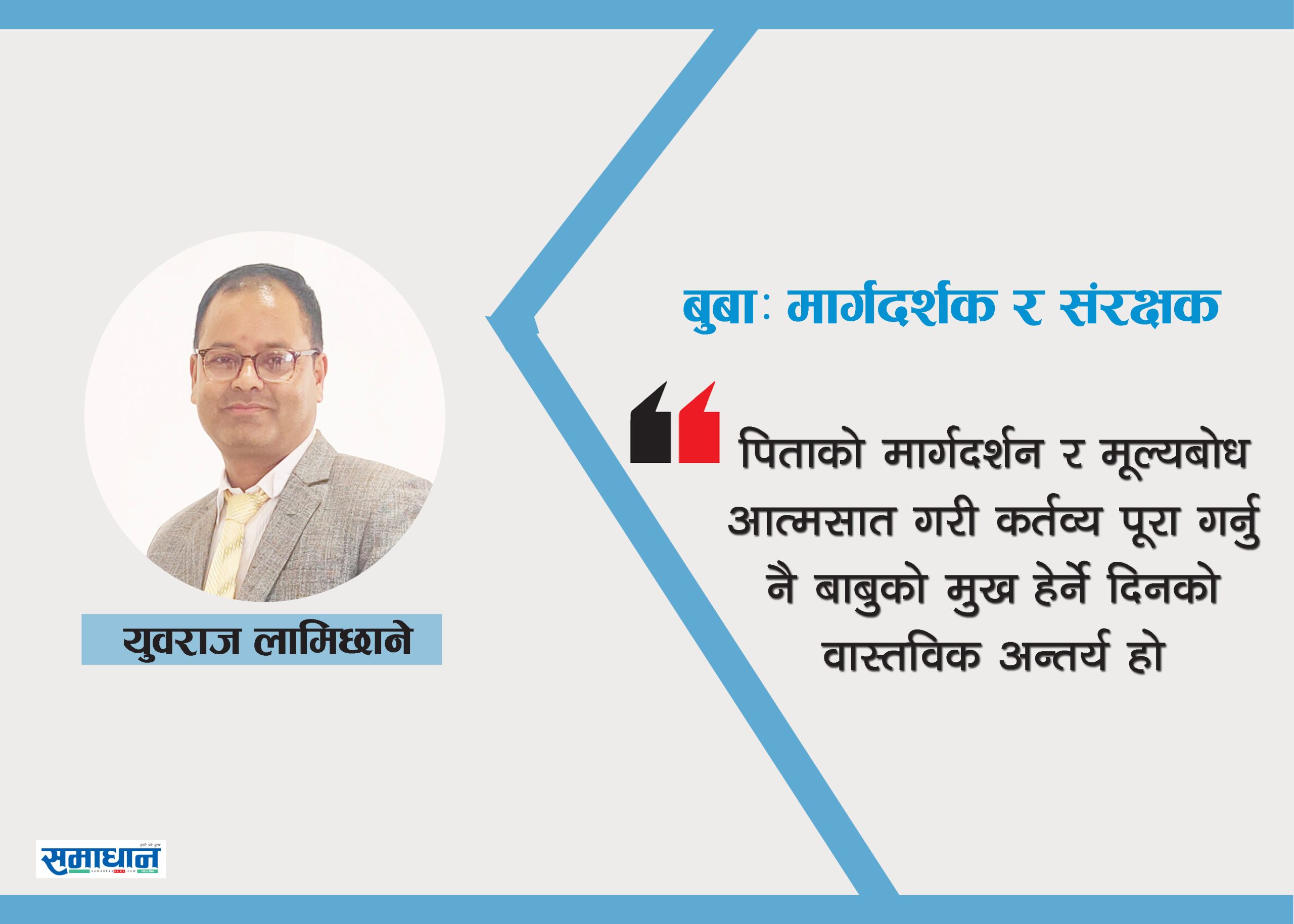 पिताको मार्गदर्शन र मूल्यबोध आत्मसात गरी कर्तव्य पूरा गर्नु नै बाबुको मुख हेर्ने दिनको वास्तविक अन्तर्य हो