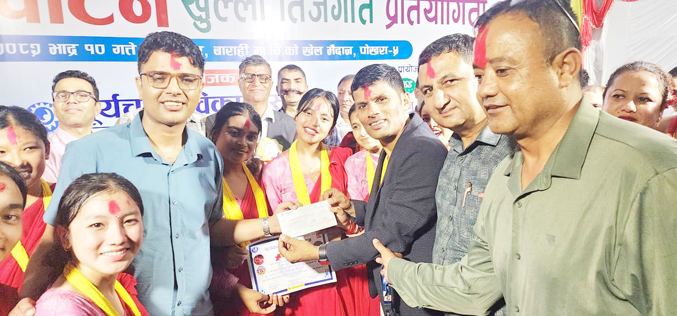 प्रतियोगितामा १६ समूहले प्रतिस्पर्धा गरेका थिए । पोखरा वडा नं ५ कार्यालयको विशेष सहयोगमा भएको प्रतियोगितामा प्रथम हुने समूहले ४० हजार, द्वितीयले ३० हजार, तृतीयले २० हजार र सान्त्वना हुने समूहलाई १० हजार रुपैयाँसहित प्रमाणपत्र प्रदान गरिएको छ । उत्कृष्ट भेषभूषा र नृत्यलाई ३/३ हजार रुपैयाँ प्रदान गरिएको समाजका अध्यक्ष सावित्री कोइरालाले जानकारी दिइन् ।