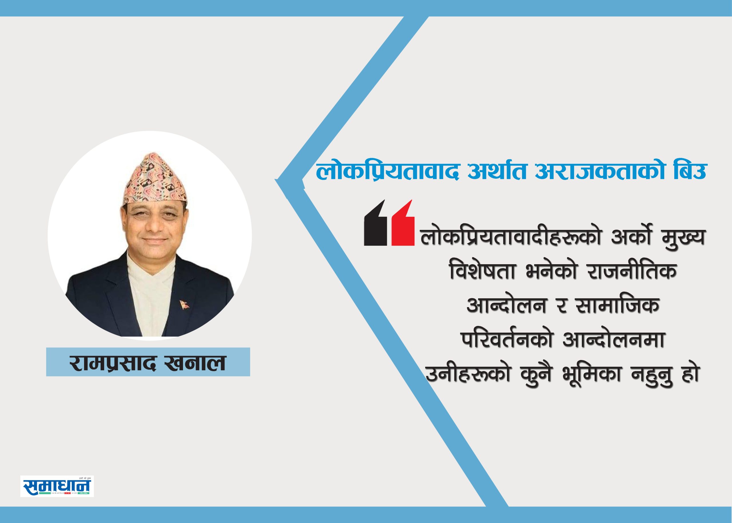 आजको विश्वमा एउटा यस्तो राजनीतिक र सामाजिक प्रवृत्ति बढ्दै गएको छ, जसलाई हामी लोकप्रियतावाद (पपुलिज्म) भन्छौँ । यो प्रवृत्तिले समाजमा अराजकता र विभाजन निम्त्याउने काम गरिरहेको छ । यसले आफूलाई जनताको पक्षमा उभिएको दाबी गरे पनि, यसको मूल चरित्र भनेको समस्याको समाधान दिने नभई केवल समस्या देखाएर समाजलाई उत्तेजित पार्नु हो । लोकप्रियतावादले समाजको गहिरो घाउको उपचार गर्नुको सट्टा, त्यसमा झनै नुनचुक छर्किने काम गर्छ ।