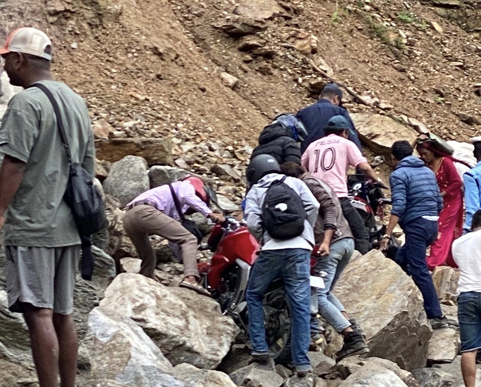 जुम्ला सडक डिभिजन कार्यालयका प्रमुख दीपेन्द्र चौधरीले सडकमा खसेका ढुंगा फुटाउन नसकिएको बताए । “ढुङ्गा फुटाउन नेपाली सेनाको टोली मान्मबाट त्यसतर्फ जाँदैछ”, उनले भने । वर्षा भइरहेका कारण सडक खुलाउन बाधा पुगेको उनले बताए ।