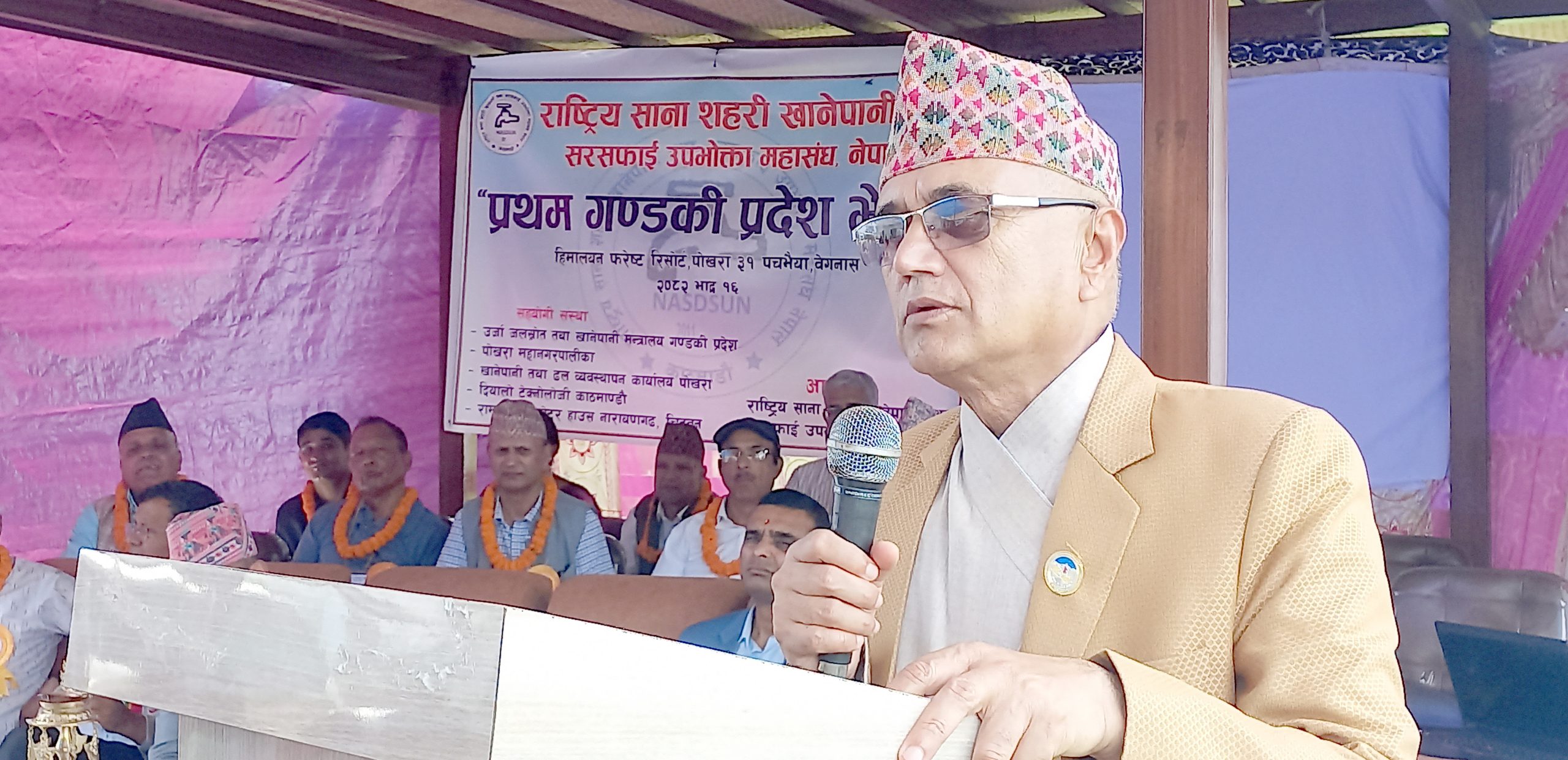भेलाको उद्घाटन गर्दै गण्डकी प्रदेशका पूर्वमुख्यमन्त्री खगराज अधिकारीले आज सर्वसाधारणलाई शुद्ध र सुरक्षित खानेपानी उपलब्ध गराउनेतर्फ लाग्नुपर्ने बताए । ’पानीको मुहान राज्यको हो’ भन्ने कुरालाई स्थापित बनाउनु जरुरी रहेको उनको भनाइ छ ।