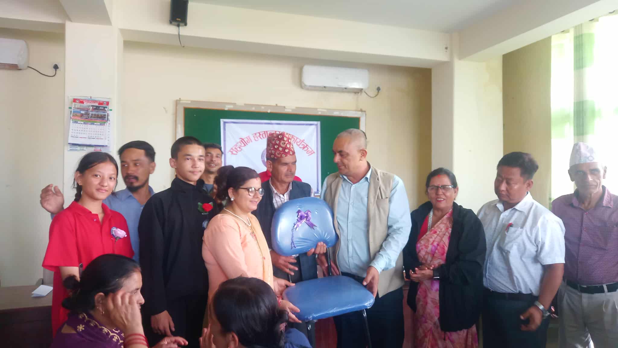 सरस्वती आदर्श विद्याश्रमले दियो ६ स्कुललाई ३२ कुर्सी