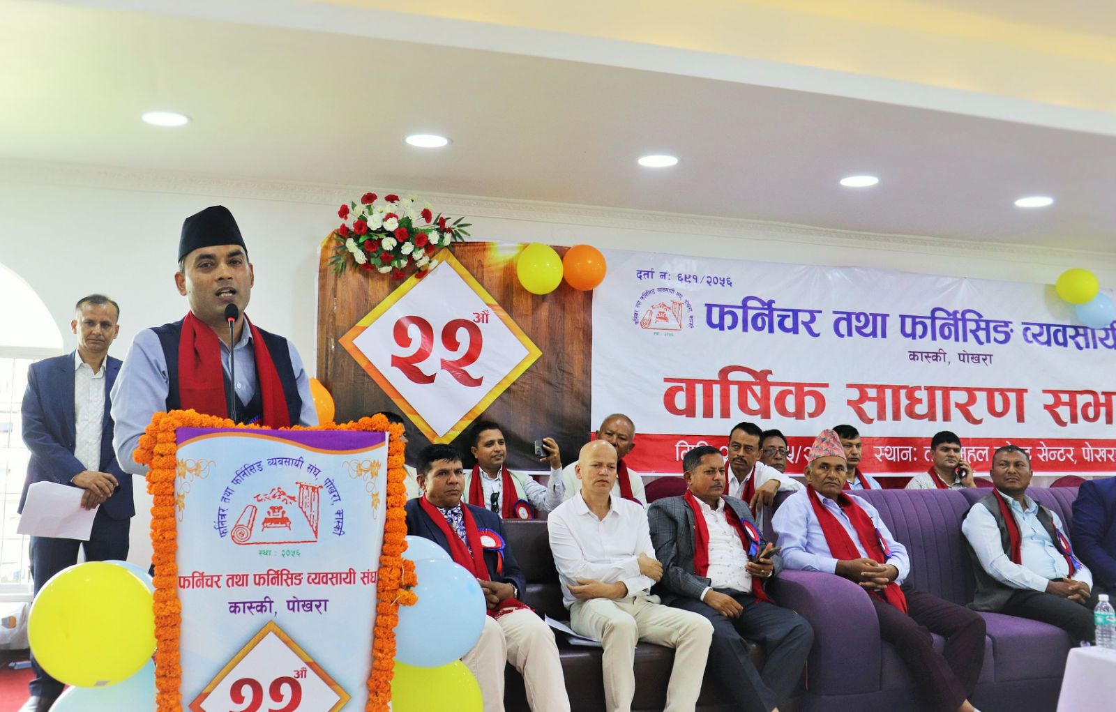 फर्निचर तथा फर्निसिङ व्यवसायी संघ कास्कीको शनिबार २२ औं साधारण सभा भएको छ। संघका अध्यक्ष सोमनाथ अर्यालको अध्यक्षतामा कार्यक्रम भएको हो। उनले नभएका उद्योगलाई काम नदिने योजना रहेको बताए। सञ्चालन गरिएको पाइएमा २ लाख सम्म जरिवाना गरिने उनको भनाइ छ।