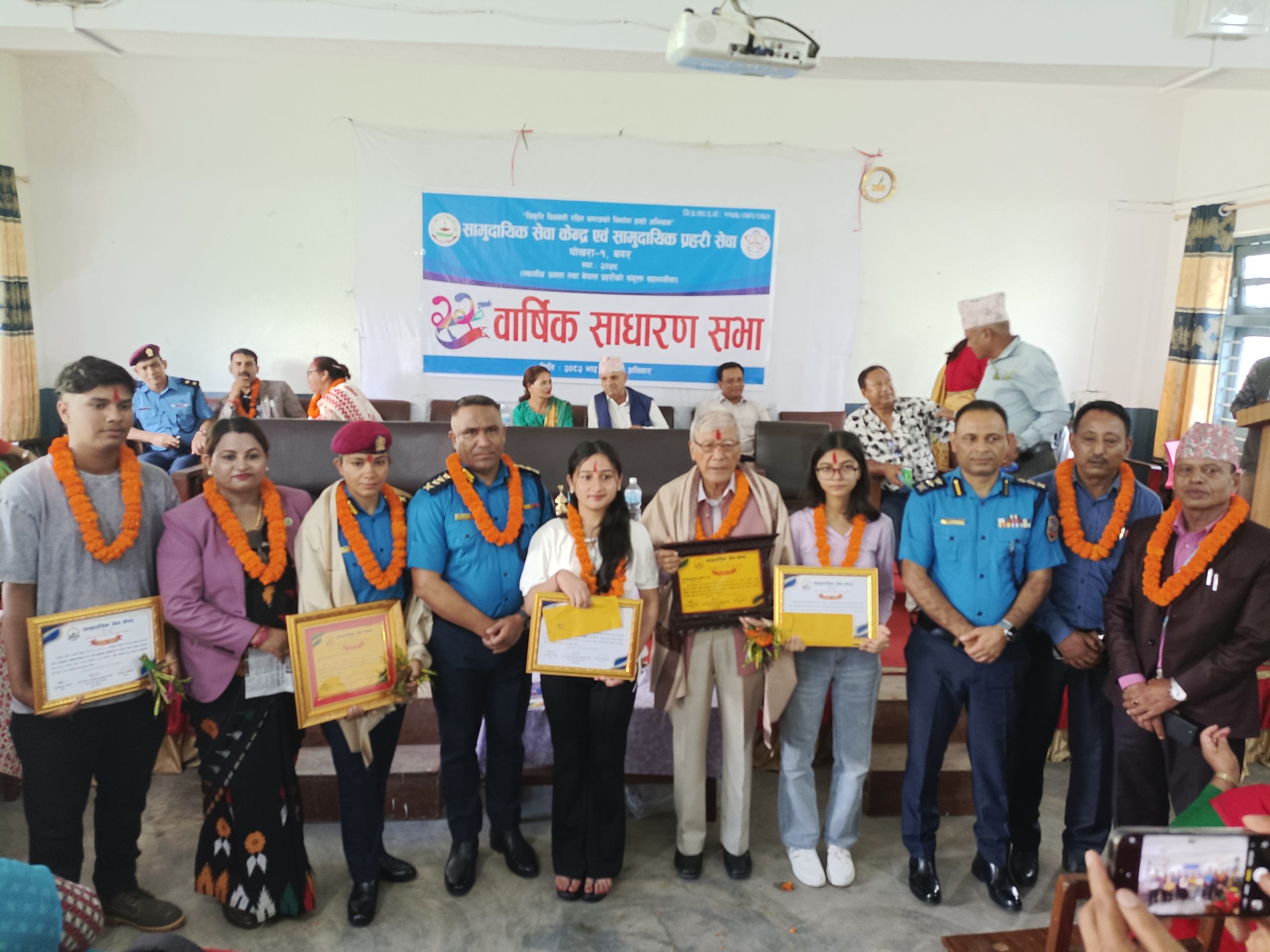 पोखरा । सामुदायिक सेवा केन्द्र एवं सामुदायिक प्रहरी सेवा पोखरा १ बगरको २२ औं वार्षिक सधारण सभा शनिबार भएको छ । सभामा गण्डकी प्रदेश प्रहरी कार्यालय, पोखराका सूचना अधिकारी प्रहरी वरिष्ठ उपरिक्षक तुलबहादुर कार्कीले कमभन्दा कम खर्च गरी उत्कृष्ट काम सामुदायिक केन्द्रहरुले गरेको उल्लेख गरे ।