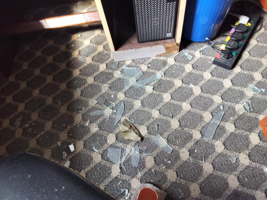 आक्रमणकारीको प्रहारले मुख्यमन्त्री कार्यालय भवनका झ्यालका सिसा फुटेका छन् ।