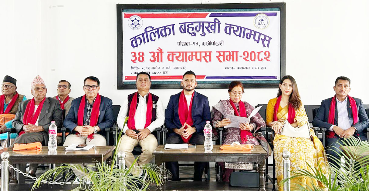 पोखरा । कालिका बहुमुखी क्याम्पस पोखराको ३४ औं क्याम्पस सभा मंगलबार भएको छ । कार्यक्रममा क्याम्पसका संरक्षक तथा पूर्व क्याम्पस सञ्चालन समितिका अध्यक्ष प्रेमकुमारी केसीले कालिका एक शिक्षाको ज्योति रहेको र यसको प्रकाश देश विदेशसम्म फैलिएको बताइन् ।