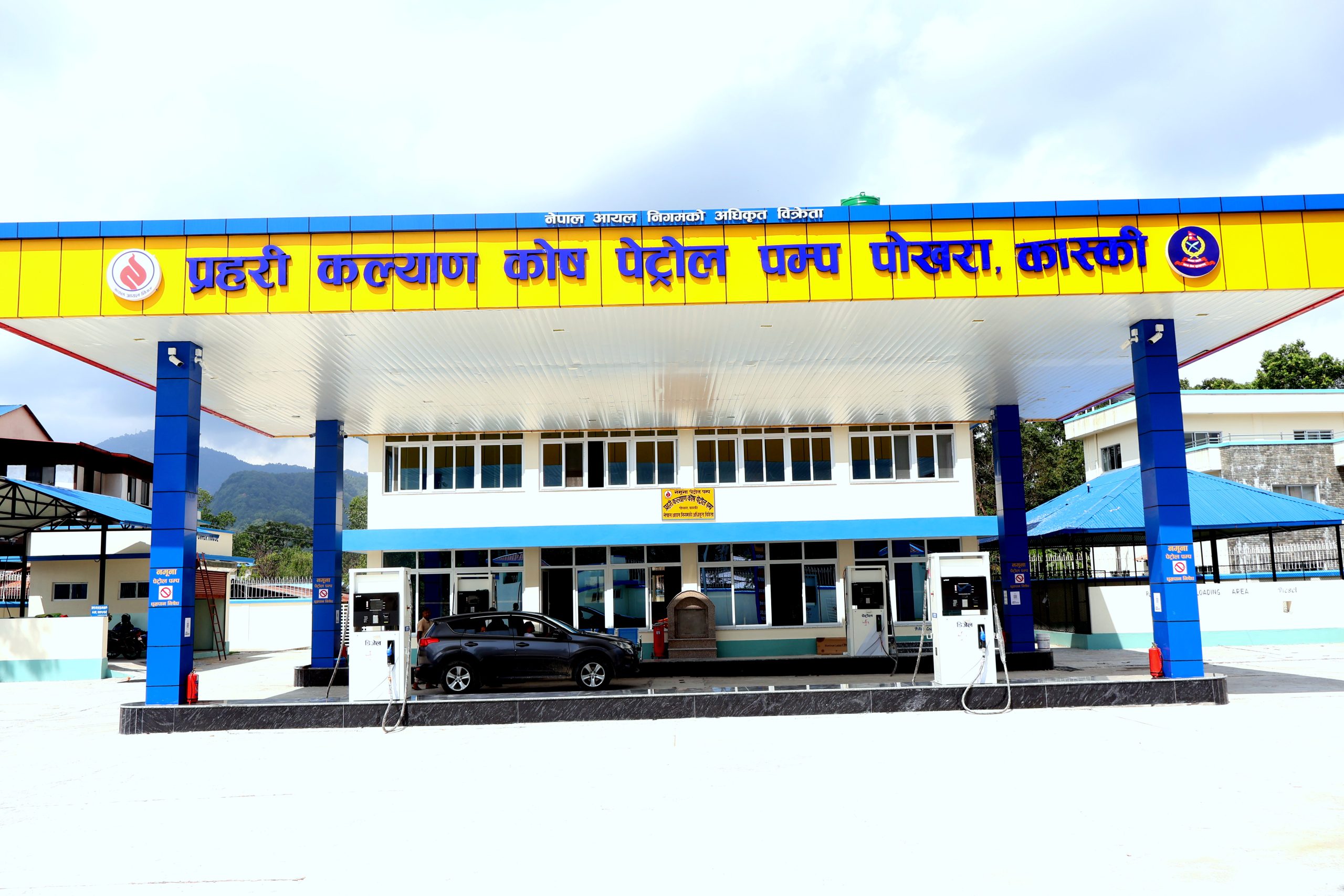 पोखरा । नेपाल प्रहरी प्रधान कार्यालय कल्याण महाशाखाले कास्कीको पोखरामा निर्माण गरेको नमूना पेट्रोल पम्प मंगलबारदेखि नियमित सञ्चालनमा आएको छ । प्रहरी प्रधान कार्यालय, कल्याण कोष नक्सालबाट सञ्चालित पम्प पोखरा–७ पार्दीस्थित प्रहरी कार्यालयको परिसरमा बनेको हो ।