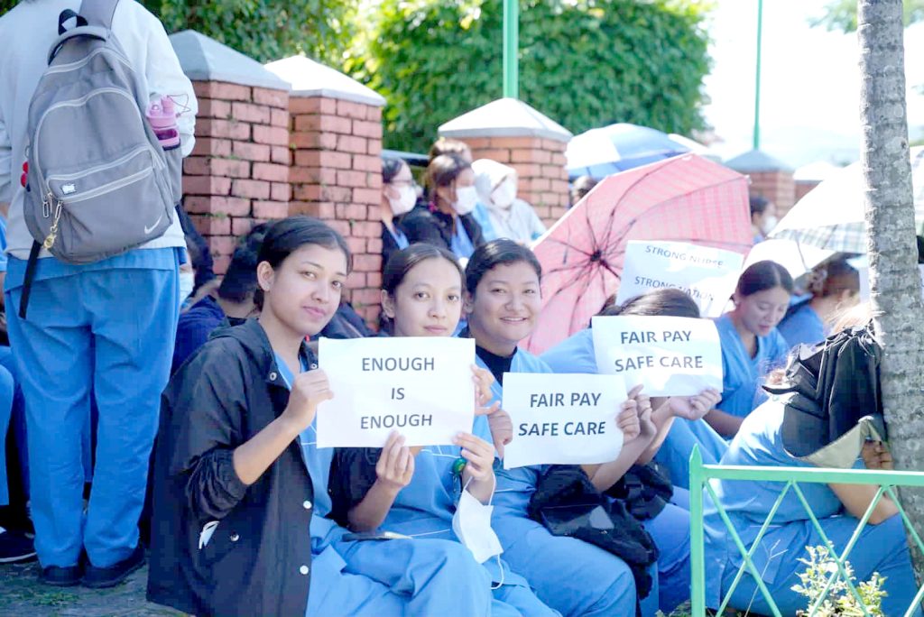 यता, अस्पताललाई स्वास्थ्य मन्त्रालयले १ वर्षअघि र नर्सिङ संघले २ दिनअघि एकमुष्ट निजी अस्पताल, प्रतिष्ठान, मेडिकल केलज, सामुदायिक अस्पताल नर्सिङ एवं अन्य स्वास्थ्यकर्मीलाई न्यूनतम पारिश्रमिक दिन ध्यानकर्षण गराएका थिए । नेपाल नर्सिङ संघकी अध्यक्ष चन्द्रकला शर्माले हस्ताक्षर गरेको विज्ञप्तिमा भनिएको छ, ‘संघले मिति २०८२ वैशाख २५ गते तलब, जोखिम भत्ता, रात्रिकालीन भत्ता लगायतका सेवा, सुविधाका लागि मागपत्र मन्त्रालयमा पेस गरिसकेको साथै पटक पटक सम्बन्धित निकायमा ध्यानाकर्षण गराए पनि आजसम्म त्यसमा कुनै ठोस कदम चालेका छैनन् ।’