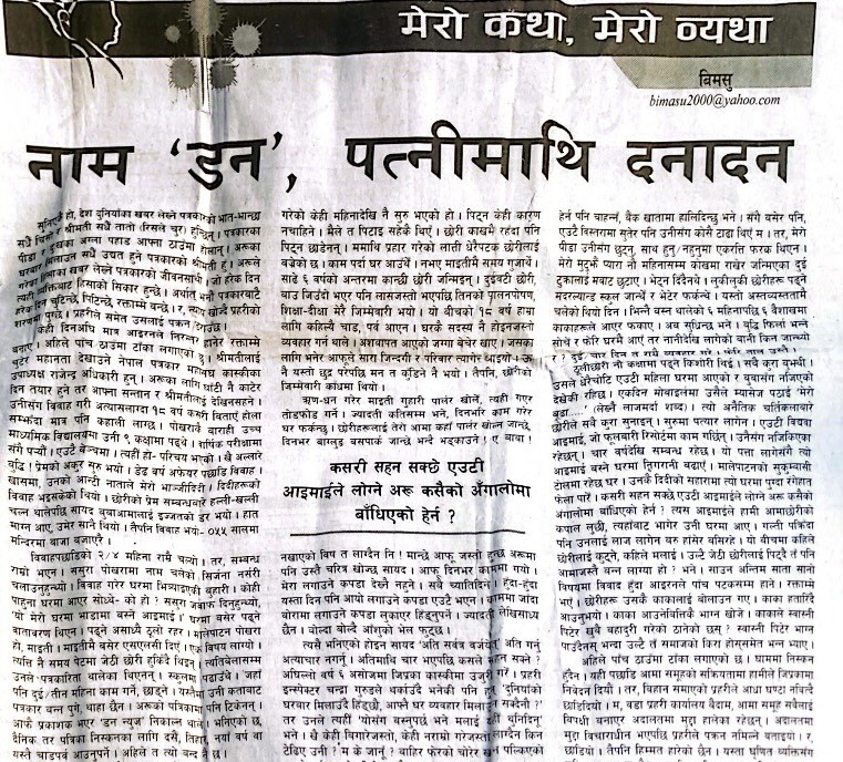 जन आस्था साप्ताहिकमा प्रकाशित आफ्नै कथा आफ्नै व्यथा स्तम्भ