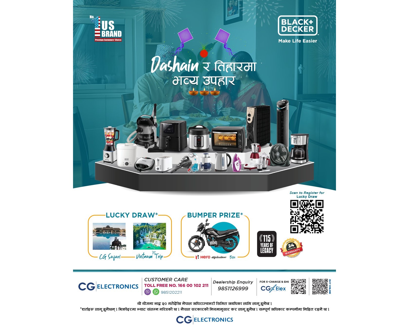 नेपालमा चाडपर्वको सन्दर्भमा ल्याइएको यो उपहार योजनाले ग्राहकको अनुभवलाई अझ मूल्यवान् बनाउने उद्देश्य राखेको छ । ब्रान्डको ’मेक लाइफ इजिअर’ भन्ने मूलमन्त्रसँग मेल खाने गरी उपकरणको खरिदसँगै उत्साहजनक उपहार जित्ने अवसर प्रदान गरिएको छ । अभियानको अन्त्यमा एक जना भाग्यशाली विजेताले अविस्मरणीय भियतनाम ट्रिप र एक जनाले हिरो स्प्लेन्डर+ मोटरसाइकल जित्नेछन् । यसबाहेक, लक्की ड्र मार्फत दुई जनाले सिजी सफारी ट्रिपको अवसर पाउनेछन् ।