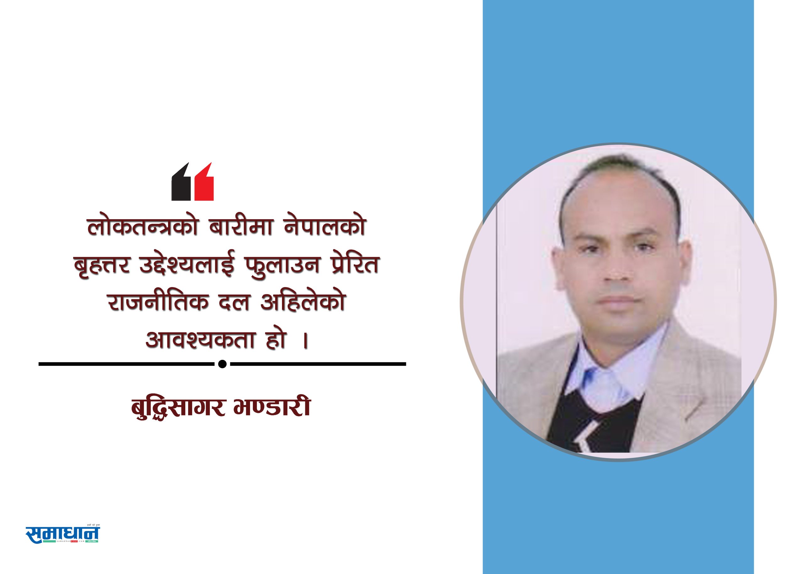 लोकतन्त्रको बारीमा नेपालको बृहत्तर उद्देश्यलाई फुलाउन प्रेरित राजनीतिक दल अहिलेको आवश्यकता हो