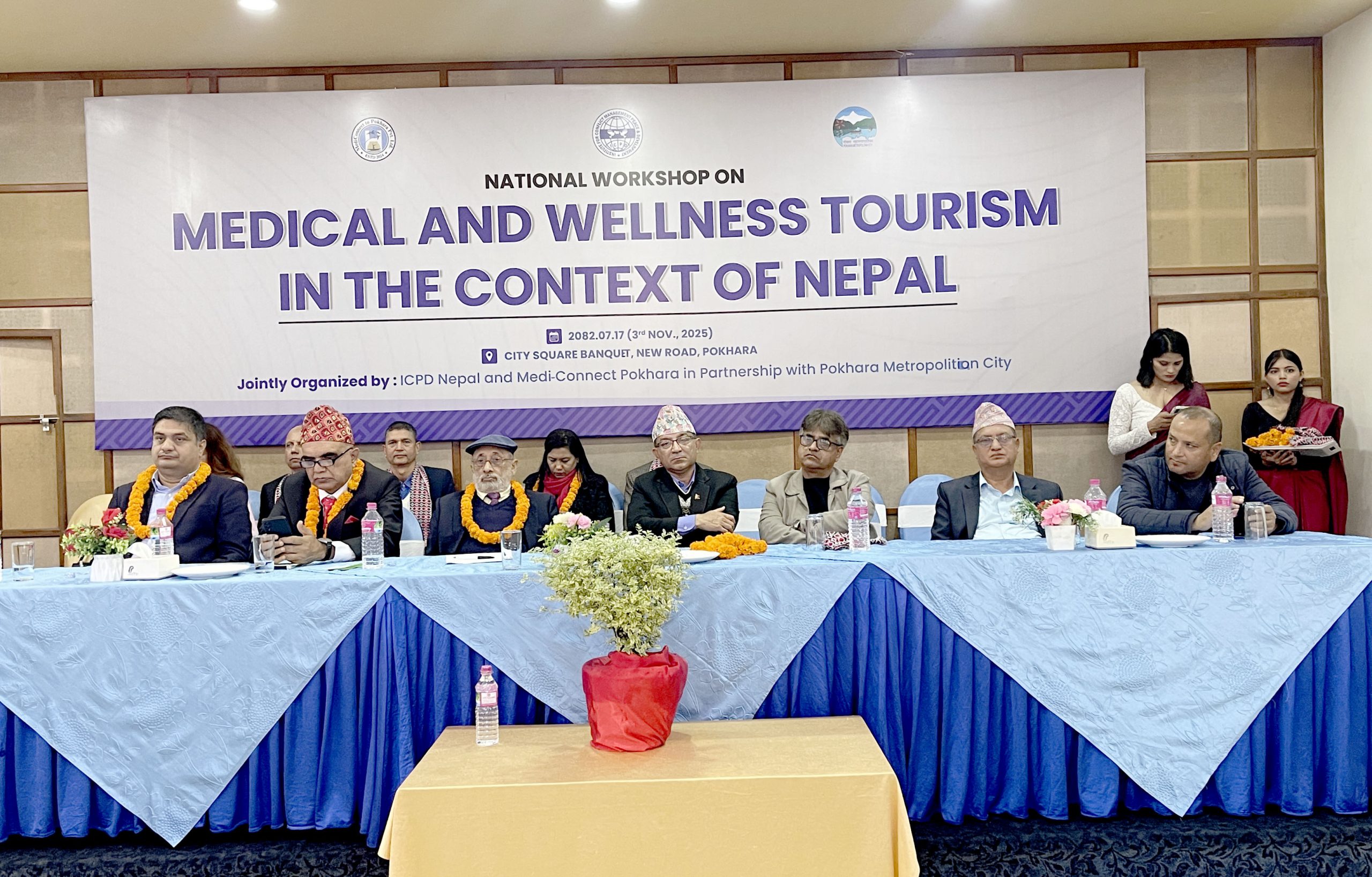 पोखरा । पयर्टनको राजधानी घोषित सहरमा स्वास्थ्य र आरोग्य पर्यटनको चर्चा गरिएको छ । स्वास्थ्य विज्ञान तथा आरोग्ययताको क्षेत्रमा क्रियाशील विज्ञहरू सम्मिलित मेडिकनेक्टको आयोजना तथा व्यवस्थापनमा आयोजित कार्यशालामा पोखरालाई स्वास्थ्य र आरोग्य पर्यटन हबका रुपमा विकास गर्न सकिने विषयमा सोमबार दिनभर विमर्श गरिएको छ ।