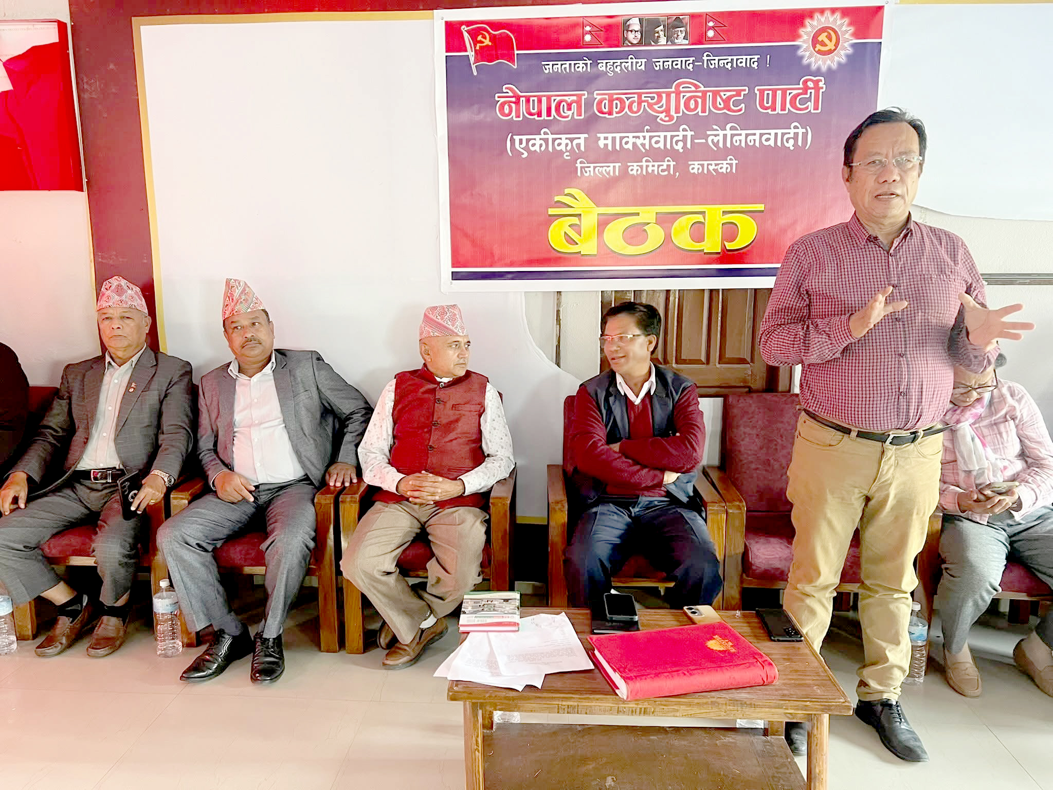 ‘संविधानको रक्षा, प्रतिगामी षडयन्त्रको बिरुद्धमा वडादेखि जिल्लासम्म गर्न लागेको प्रर्दशनलाई प्रभावकारी बनाउन कार्ययोजना बनाएर कार्यान्वयन गरिने छ,’ उनले भने, ‘कास्कीका ७२ वडा, पालिका र जिल्लास्तरीय जनसभालाई मर्यादित र व्यवस्थित बनाइने छ ।’