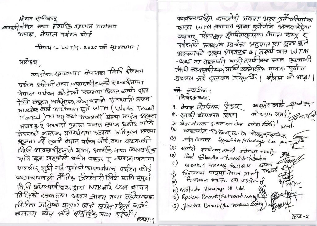 व्यवसायीले बोर्डका अध्यक्ष एवं पर्यटन मन्त्रालयका सचिव हरि प्रसाद मैनालीलाई ज्ञापन पत्र बुझाउने प्रयास गरेका थिए । तर मेलाको समापनको दिन सचिव मैनाली महोत्सव स्थलमा नआएका कारण सिईओ जोशीलाई बुझाएका थिए ।