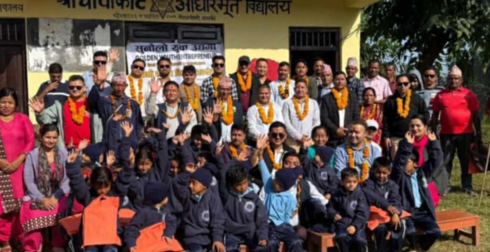 पोखरामा सुनचाँदी व्यवसायमा संलग्न युवा उद्यमीहरूको संस्था सुनौलो युवा उद्यमी संस्थाले तिहारमा देउसीभैलो खेलेर संकलन गरेको रकमबाट त्यस विद्यालयका २७ जना विद्यार्थीलाई जाडोका लागि न्यानो कपडासहित आवश्यक स्टेशनरी र खेलकुदका सामग्री हस्तान्तरण गरेको हो । शुक्रबार विद्यालयमा आयोजित कार्यक्रममा वडाध्यक्ष रामकाजी गुरुङ, नेपाल सुनचाँदी व्यवसायी महासंघ गण्डकीका अध्यक्ष चन्द्रकिशोर गौतम, नेपाल सुनचाँदी व्यवसायी संघ कास्कीका अध्यक्ष भविन्द्र विश्वकर्मा र संस्थाका अध्यक्ष मनोज विश्वकर्मा ‘विनोद’ ले सामग्री हस्तान्तरण गरे ।