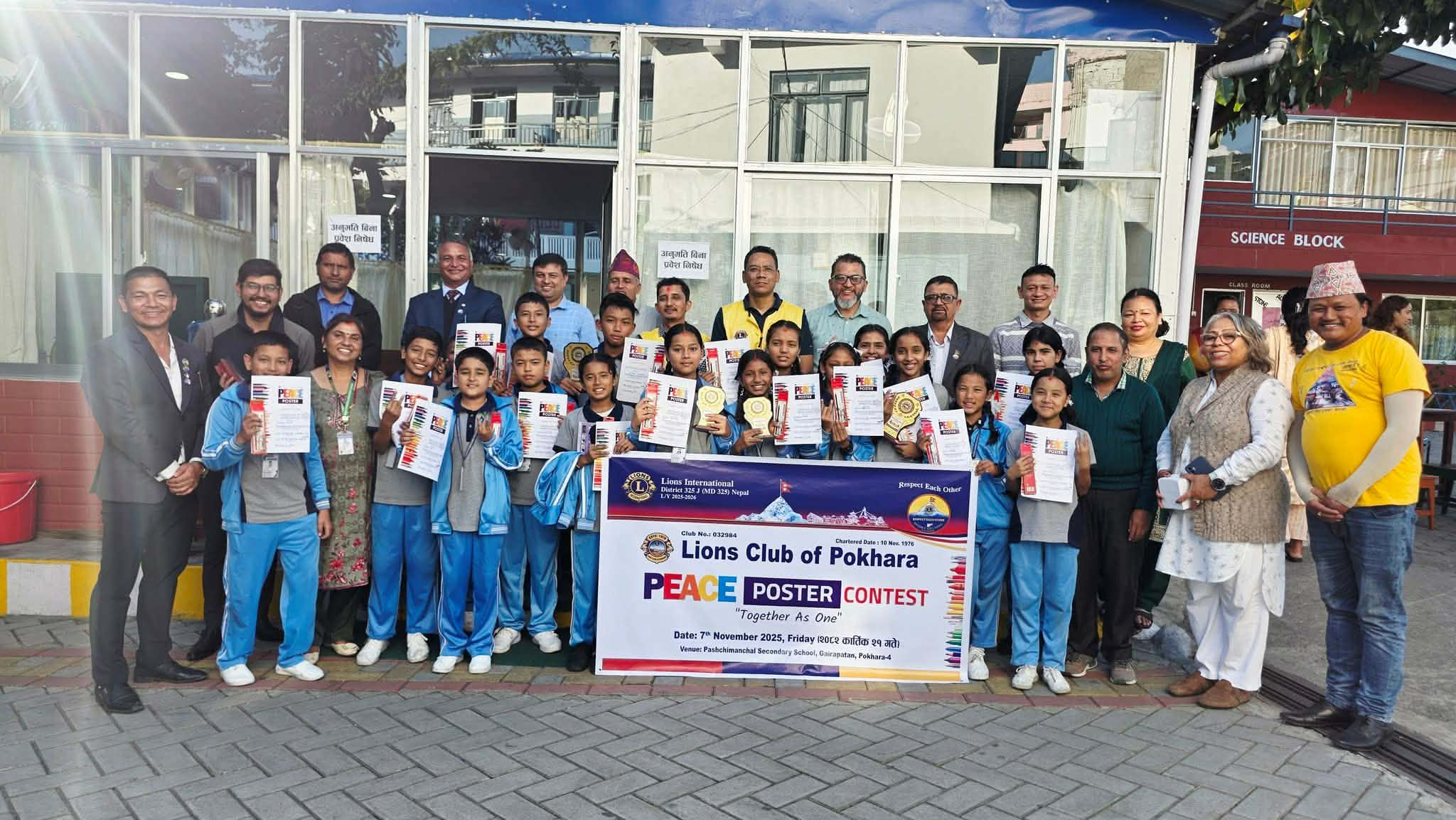 पोखरा। लायन्स क्लब अफ पोखराको आयोजनामा ‘पिस पोस्टर कन्टेस्ट’ शुक्रबार पश्चिमाञ्चल माध्यमिक विद्यालयमा सम्पन्न भएको छ। ‘टुगेदर एज वन’ भन्ने विषयमा आधारित उक्त प्रतियोगिता विद्यार्थीहरूमा शान्ति, एकता र सहअस्तित्वको सन्देश फैलाउने उद्देश्यले आयोजना गरिएको थियो।