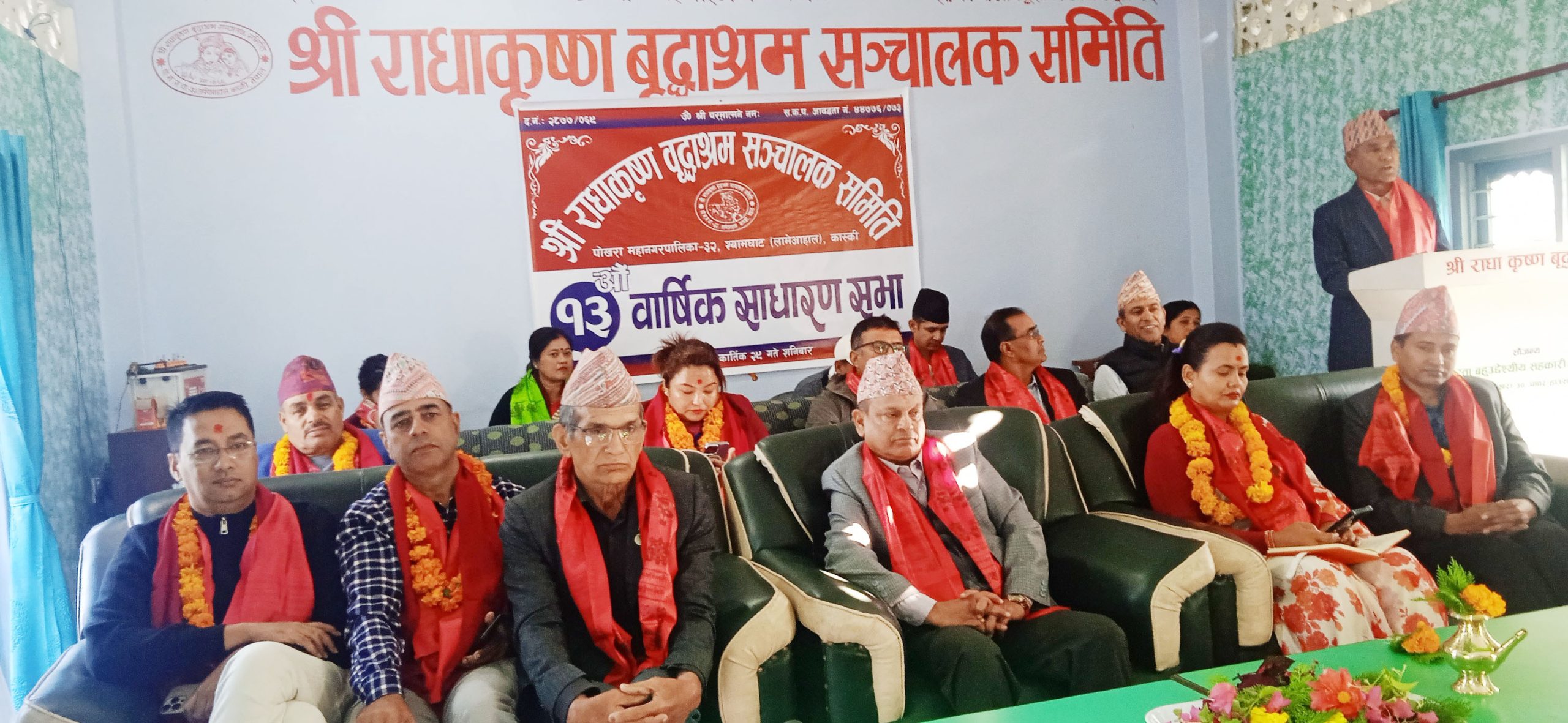 पोखरा महानगरपालिका–३२ लामेआहालमा रहेको राधाकृष्ण वृद्धाश्रम सञ्चालक समितिको १३ औँ साधारण सभा सम्पन्न भएको छ । समाजसेवा, मानवता र ज्येष्ठ नागरिकको सम्मानलाई केन्द्रमा राखेर कार्यरत यस संस्थाले आफ्ना गतिविधि, उपलब्धि र आगामी योजनाहरू सार्वजनिक गर्दै साधारण सभा सम्पन्न गरेको हो ।