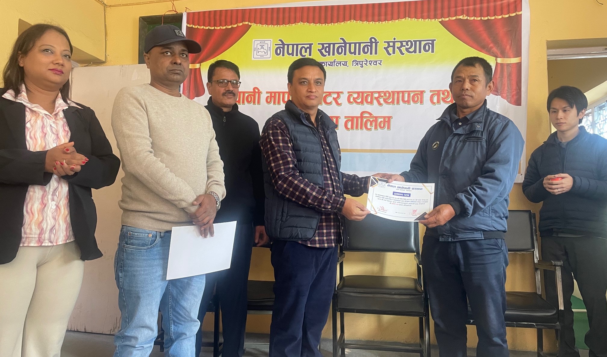 नेपाल खानेपानी संस्थान प्रधान कार्यालयले संस्थानका विभिन्न शाखाका कर्मचारीलाई २ दिने पानी मापन मिटर व्यवस्थापन तथा परीक्षण तालिम प्रदान गरेको छ ।