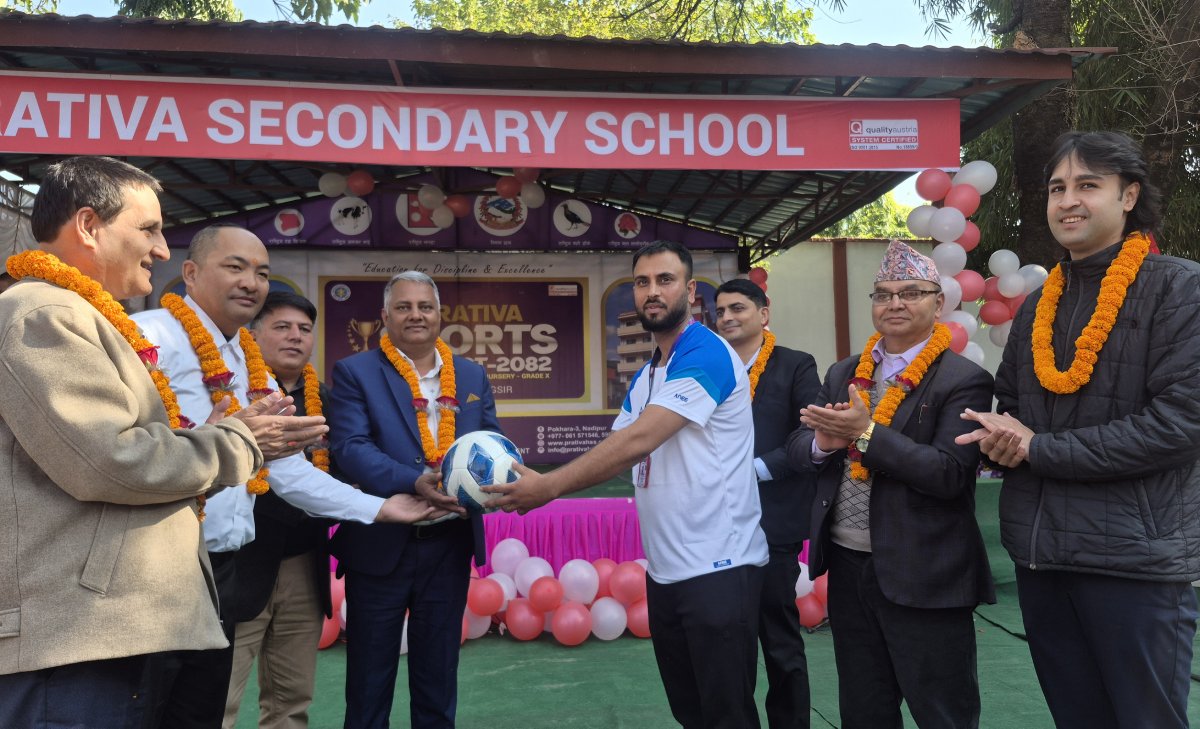 पोखराको नदिपुरमा रहेको प्रतिभा माध्यमिक विद्यालयको वार्षिक कार्यक्रम अनुसार स्पोर्टस् फेस्ट २०८२ को औपचारिक शुभारम्भ बुधबार गरिएको छ । दुई साता चल्ने स्पोर्टस् फेस्टमा हरियो, रातो, पहेंलो र निलो गरी सदनात्मक रुपमा विद्यार्थीले प्रतिष्पर्धामा भाग लिनेछन् । विद्यालयका पूर्वप्राथमिकदेखि कक्षा १० सम्मका विद्यार्थीहरुले विभिन्न खेलहरुमा प्रतिष्पर्धा गर्नेछन् ।