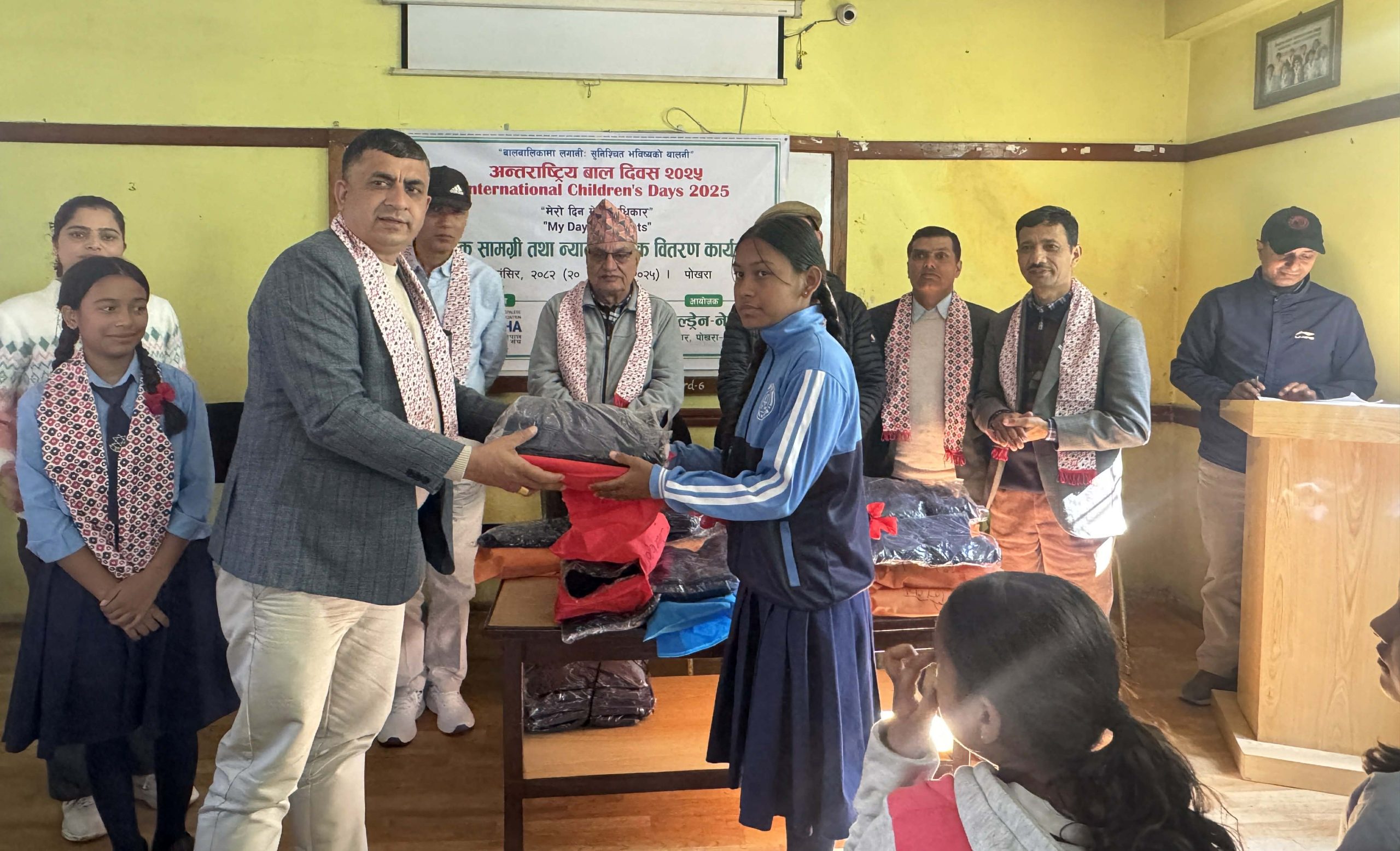 पोखरा । चिल्ड्रेन नेपालले अन्तर्राष्ट्रिय बाल अधिकार दिवस २०२५ का अवसरमा ४ सय बालबालिकालाई शैक्षिक सामग्री तथा न्यानो स्वेटर वितरण गरेको छ । ‘मेरो दिन, मेरो अधिकार’ भन्ने अन्तर्राष्ट्रिय र ‘बालबालिकामा लगानीः सुनिश्चित भविष्यको थालनी’ भन्ने राष्ट्रिय नारालाई सार्थक तुल्याउँदै संस्थाले बालबालिकालाई शैक्षिक सामग्री र न्यानो कपडा सहयोग गरेको हो ।