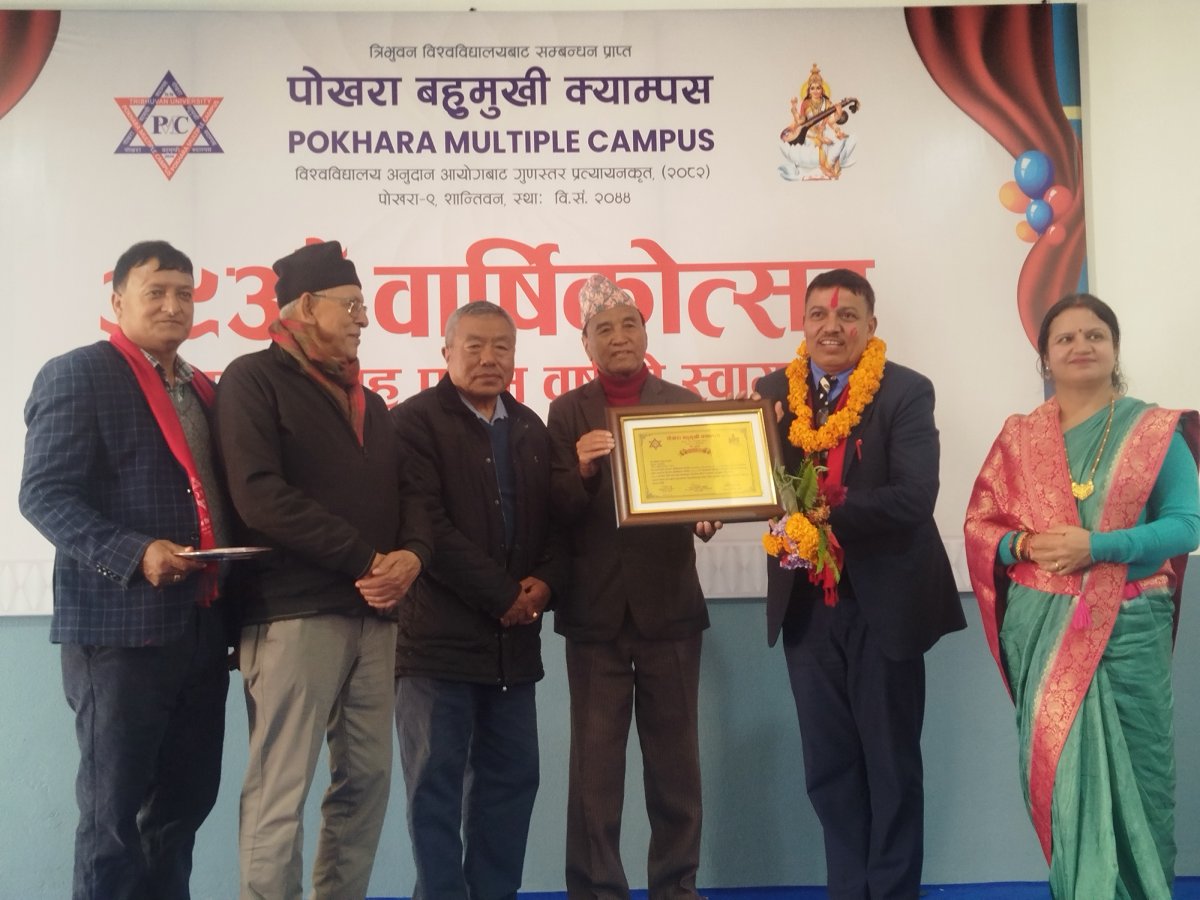 समारोहमा उत्कृष्ट प्राध्यापक र कर्मचारीलाई पनि पुरस्कृत गरियो । वर्ष उत्कृष्ट प्राध्यापकका रूपमा आइतकुमारी गुरुङ र उत्कृष्ट कर्मचारीका रूपमा लक्ष्मी बास्तोला सम्मानित भएका छन् । यस्तै क्याम्पसलाई सहयोग गर्ने चन्दादाताहरू पोखरा–४ का भुवनसिंह गुरुङ, युगेन पालिखे, कृष्ण पोखरेल र अमरसिंह मावि २०२७ को एसएलसी ब्याचलाई सम्मान गरिएको थियो ।