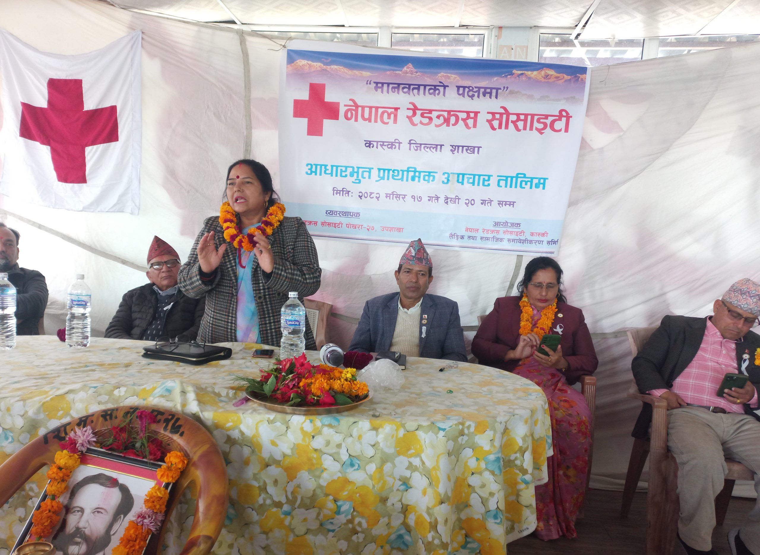 नेपाल रेडक्रस सोसाईटी कास्कीकाे आयाेजनामा चार दिने आधारभुत प्रथामिक उपचार तालिम सुरु भएकाे छ।